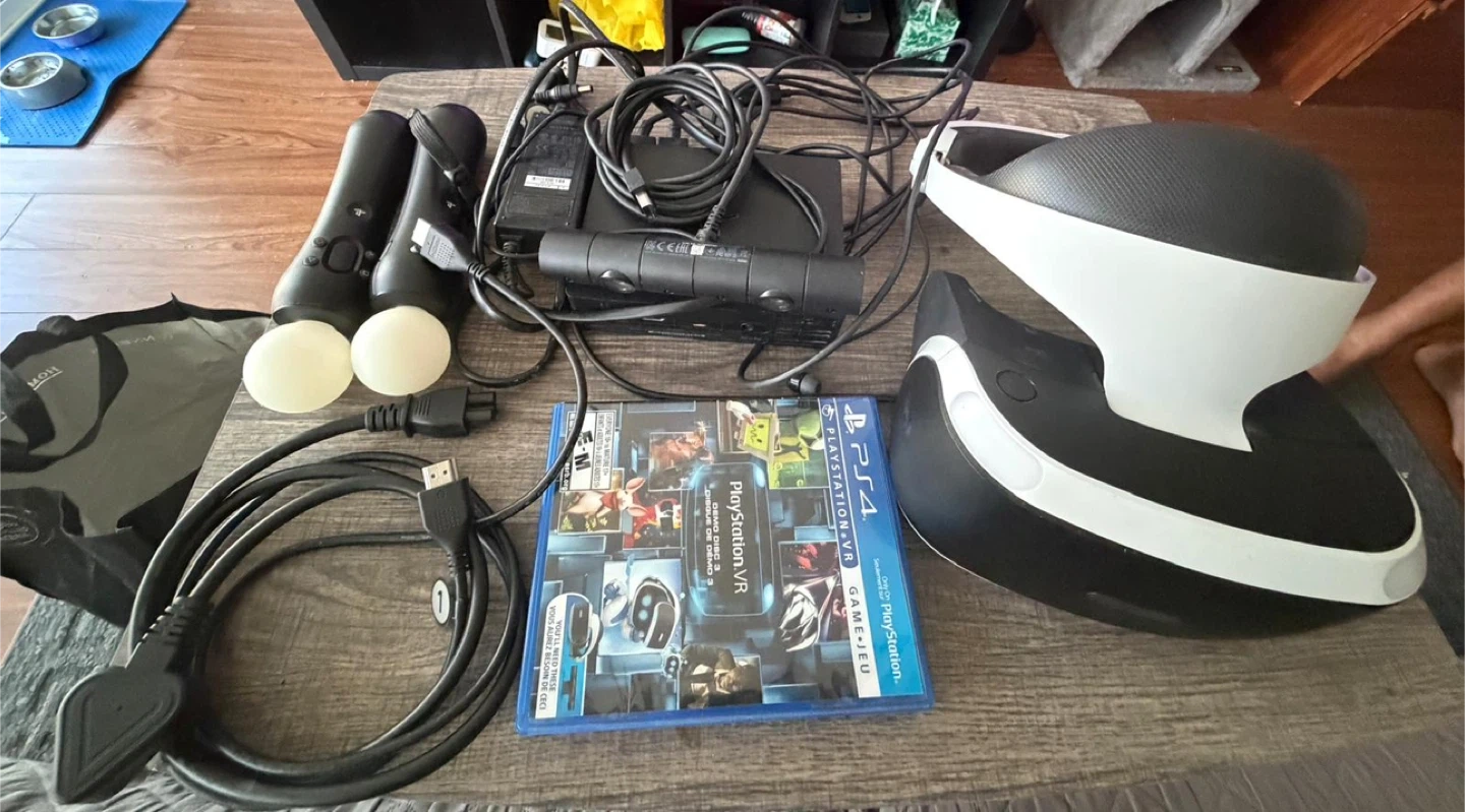 Selling a PlayStation VR (PS4) bundle in good working condition. Everything shown in the photos is included.