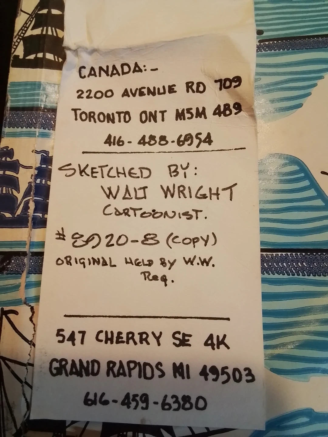 Vintage Cartoon Sketcher Artist Signed Walt Wright 17" x 13" with COA 1989