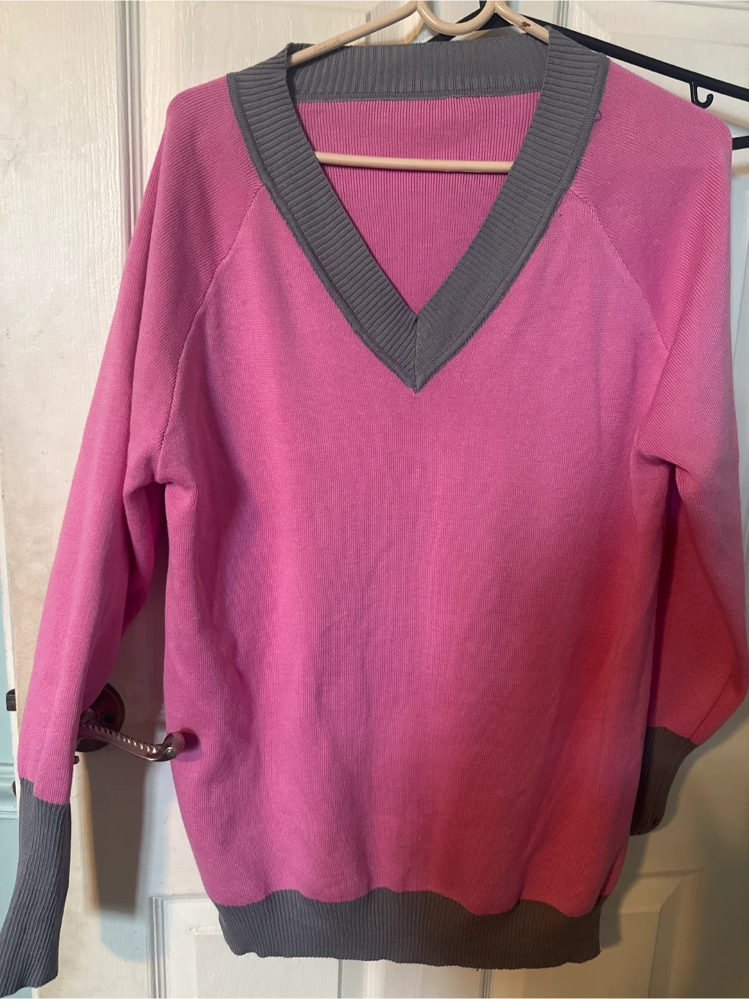 Buy & SellPink & Grey V-Neck SweaterPink & Grey V-Neck SweaterFreeA comfy pink sweater with grey accents on the V-neck and cuffs. It's a pullover style with long sleeves. This sweater is made of a soft knit material.ConditionGoodSizeMediumWHERE TO MEET212 Kerr StView MapSELLERverifiedJanaCentral Oakville770 reviews0 chats·0 favorites·14 viewsSEND CHAT TO SELLERHi Jana! I’m interested in your listing.Hi Jana! I’m interested in your listing.Get the Karrot app to chatSign In to chat