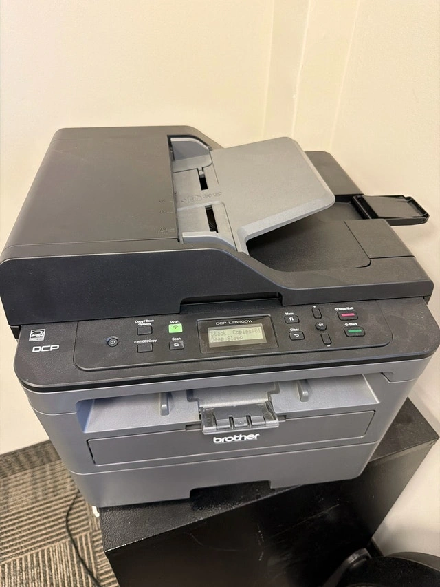 Works perfectly, just don't need it anymore because we're downsizing our office. This Brother DCP-L2550DW is a fast and reliable monochrome laser multifunction copier, ideal for a busy home or small office. It features a 50-sheet automatic document feeder for multi-page copying and scanning, and print speeds up to 36 pages per minute. You can enjoy wireless printing from practically any mobile device if you have a wireless connection. The 250-sheet paper capacity handles letter and legal sized paper. Sharing with multiple users is easy on your network or by connecting locally via USB, built-in wireless, or Ethernet. Automatic duplex (2-sided) printing helps save paper.