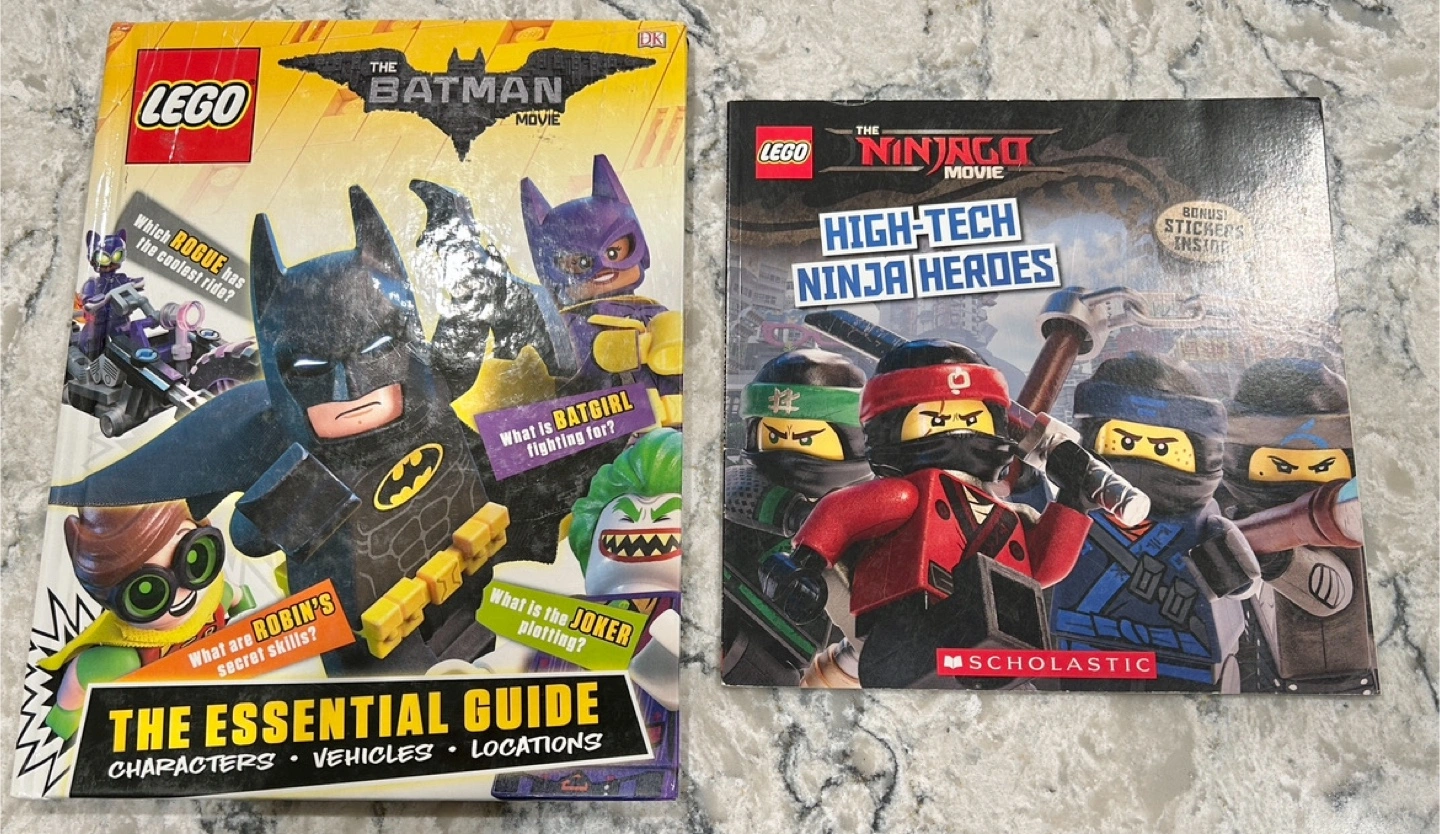 Pair of LEGO movie books: The LEGO Batman Movie: The Essential Guide, and The LEGO Ninjago Movie: High-Tech Ninja Heroes.