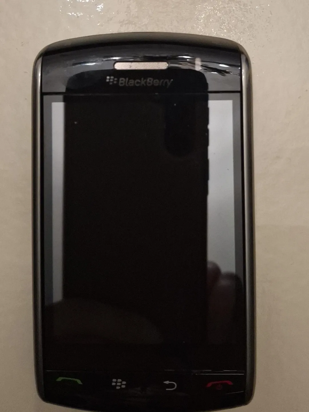 This is a black BlackBerry smartphone. It has a touchscreen interface and a sleek design. It's a reliable device for communication.
