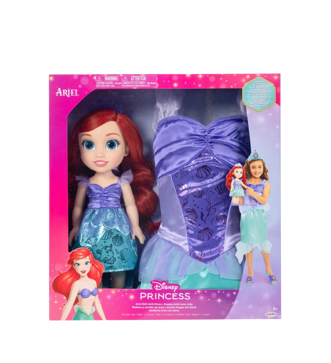 • INCLUDES: 1 Ariel Doll, 1 Doll Dress, 1 Pair of Doll Shoes, 1 Doll Tiara and 1Ariel Child Dress