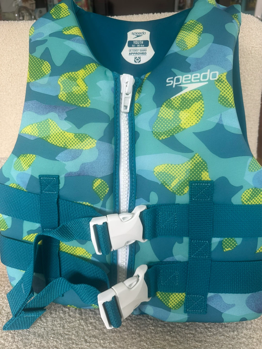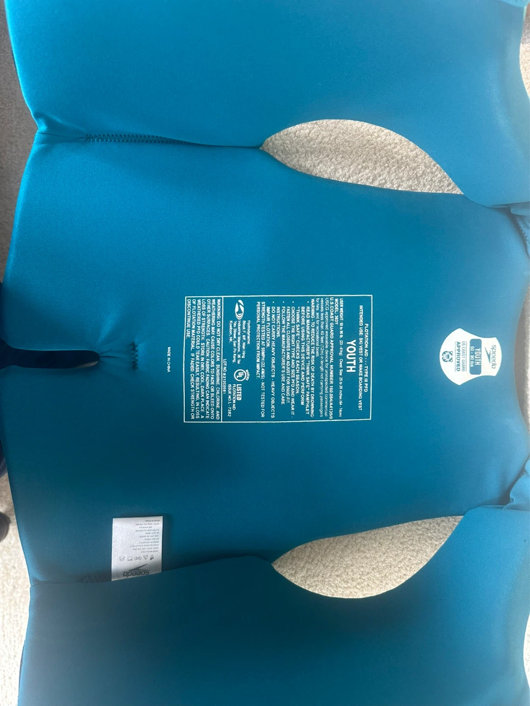 This is a Speedo youth life vest. It's a Type III Personal Flotation Device. Made for swimming and water sports.