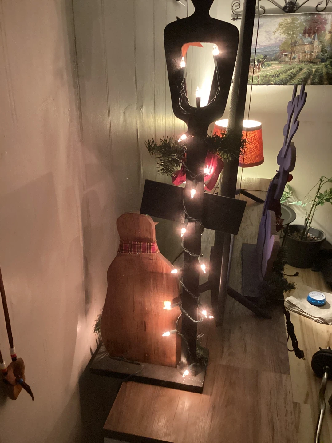 Cute lamp post decoration with a snowman and a 'Welcome' sign. It's perfect for adding a cozy touch to your home during the holidays