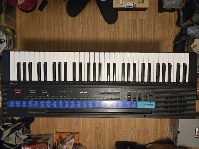 This is a used Casio CT-615 keyboard, perfect for beginners or anyone looking for a fun and versatile instrument. This keyboard features 49 keys and 210 sound tone bank, offering a wide range of sounds and rhythms to explore. Additional features include: * Built-in speakers * Multiple instrument voices and rhythms * Accompaniment and chord functions This keyboard is in fair condition and is priced to sell, as I am downsizing my collection. Looking at similar keyboards listed on Kijiji, a fair price for this item would be $75.00 CAD. If the ad is still up, yes, it's still available!