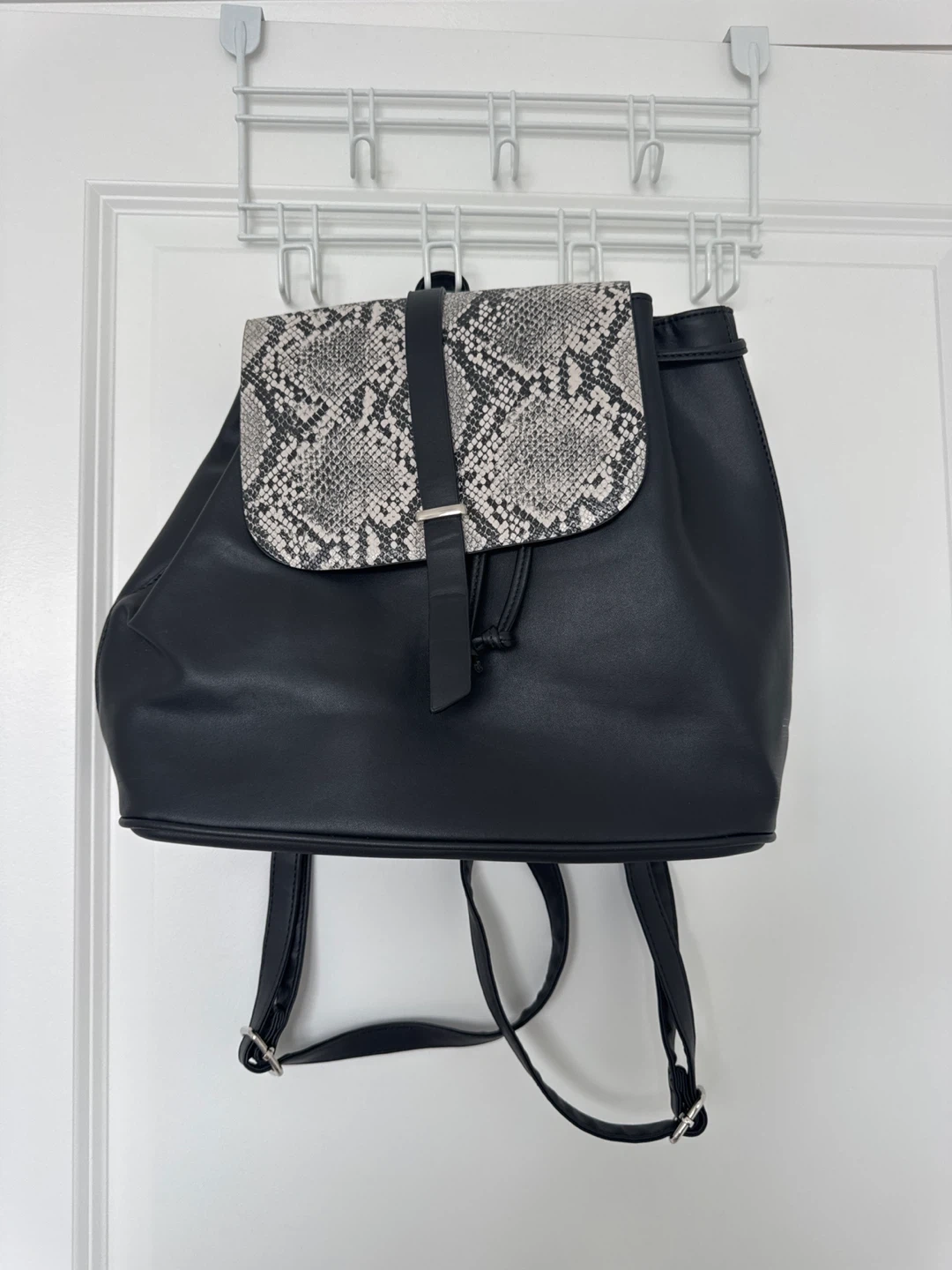 Buy & SellBlack Faux Leather Backpack with Snakeskin DetailBlack Faux Leather Backpack with Snakeskin Detail$8This black faux leather backpack features a stylish snakeskin print flap. It's got adjustable shoulder straps for comfort. Perfect for everyday use!ConditionLike newWHERE TO MEETKennedy CommonsView MapSELLERverifiedVanessaPleasant View731 review0 chats·0 favorites·10 viewsSEND CHAT TO SELLERHi Vanessa! I’m interested in your listing.Hi Vanessa! I’m interested in your listing.Get the Karrot app to chatSign In to chat