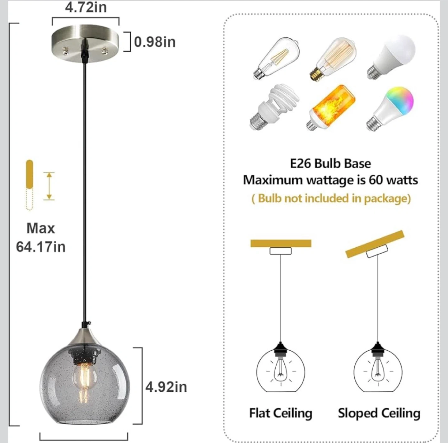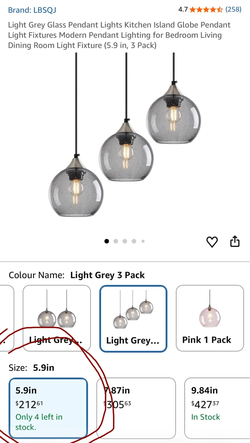 Brand New! LBSQJ Light Grey Glass Pendant Lights Kitchen Island Globe Pendant Light Fixtures Modern Pendant Lighting for Bedroom Living Dining Room Light Fixture (5.9 in, 3 Pack)