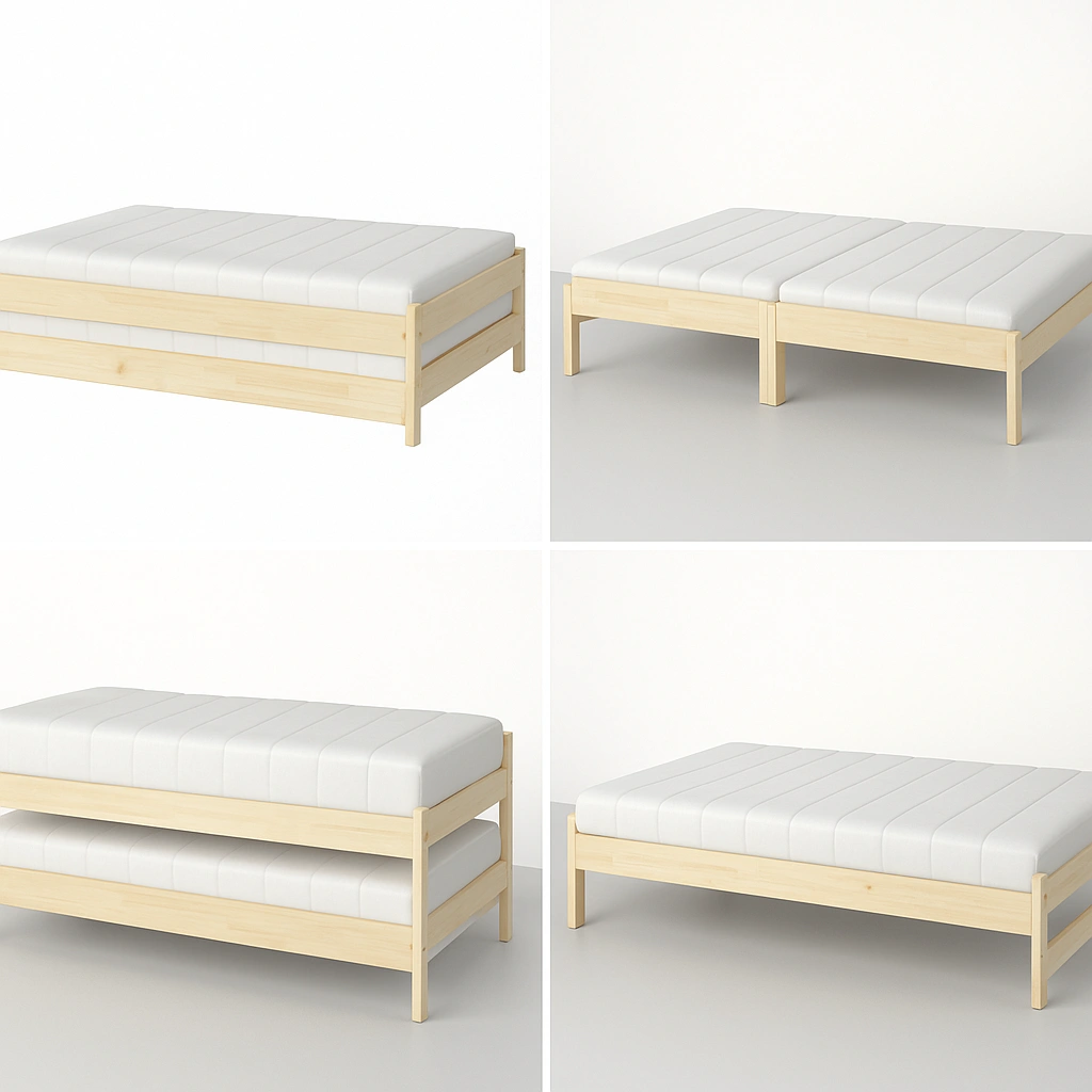 ✨ Space-saving and versatile – use as a single bed, two separate twins, or stacked like a daybed/sofa