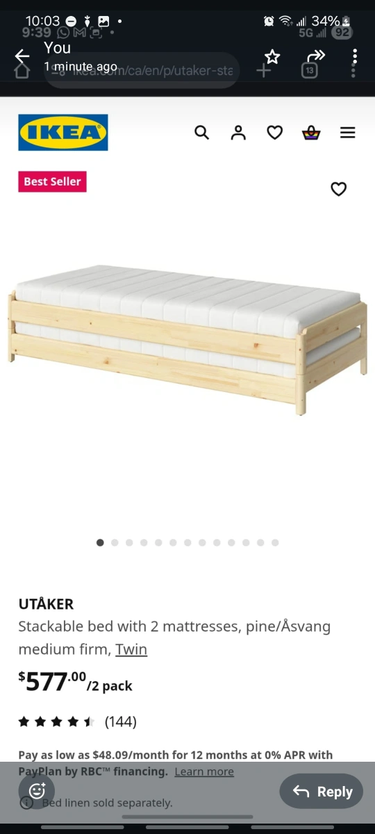🛏️ IKEA UTÅKER Stackable Twin Beds – 2 Beds + 2 Mattresses – Excellent Condition – $400