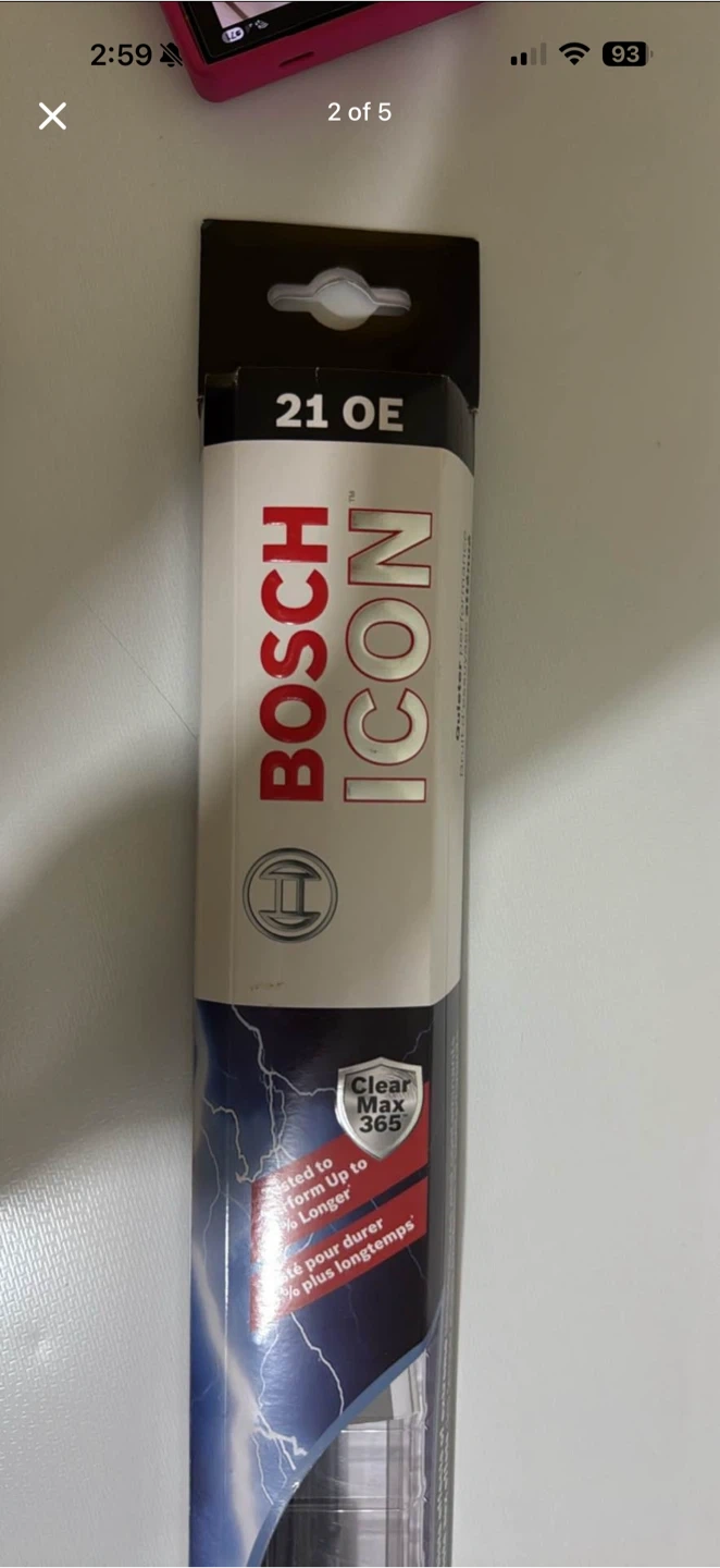 This is a Bosch Icon wiper blade, size 21 OE. It features ClearMax 365 rubber technology with a powder-coated shell. Designed to perform up to 40% longer than others! It comes with an easy installation adapter.