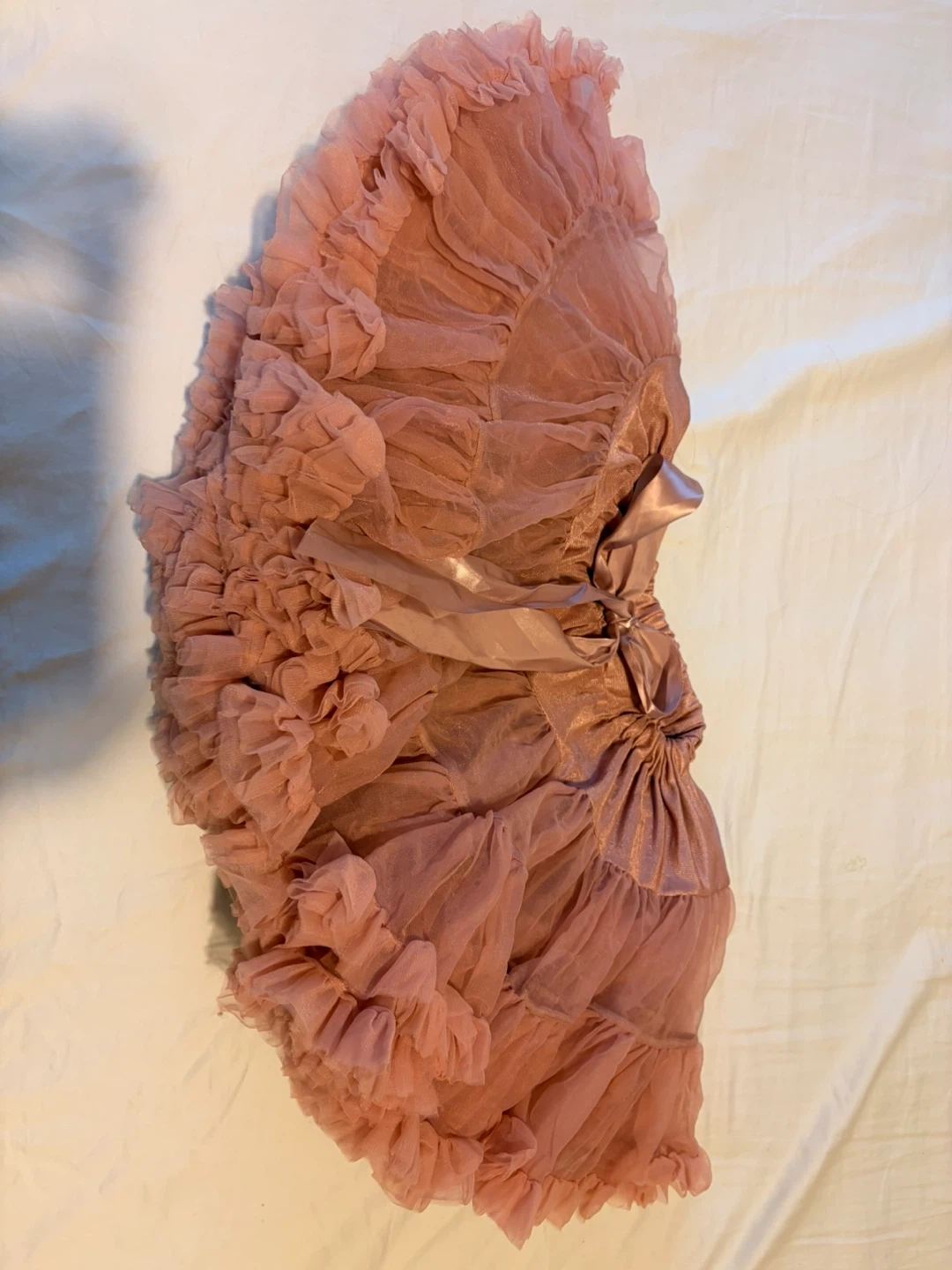 Special Tea Pink ruffled tutu dress. Mi Amour Little Ballerina line. Size Medium, fits 4-6 years. Lots of fluffy tulle layers. Has a cute ribbon tie detail.