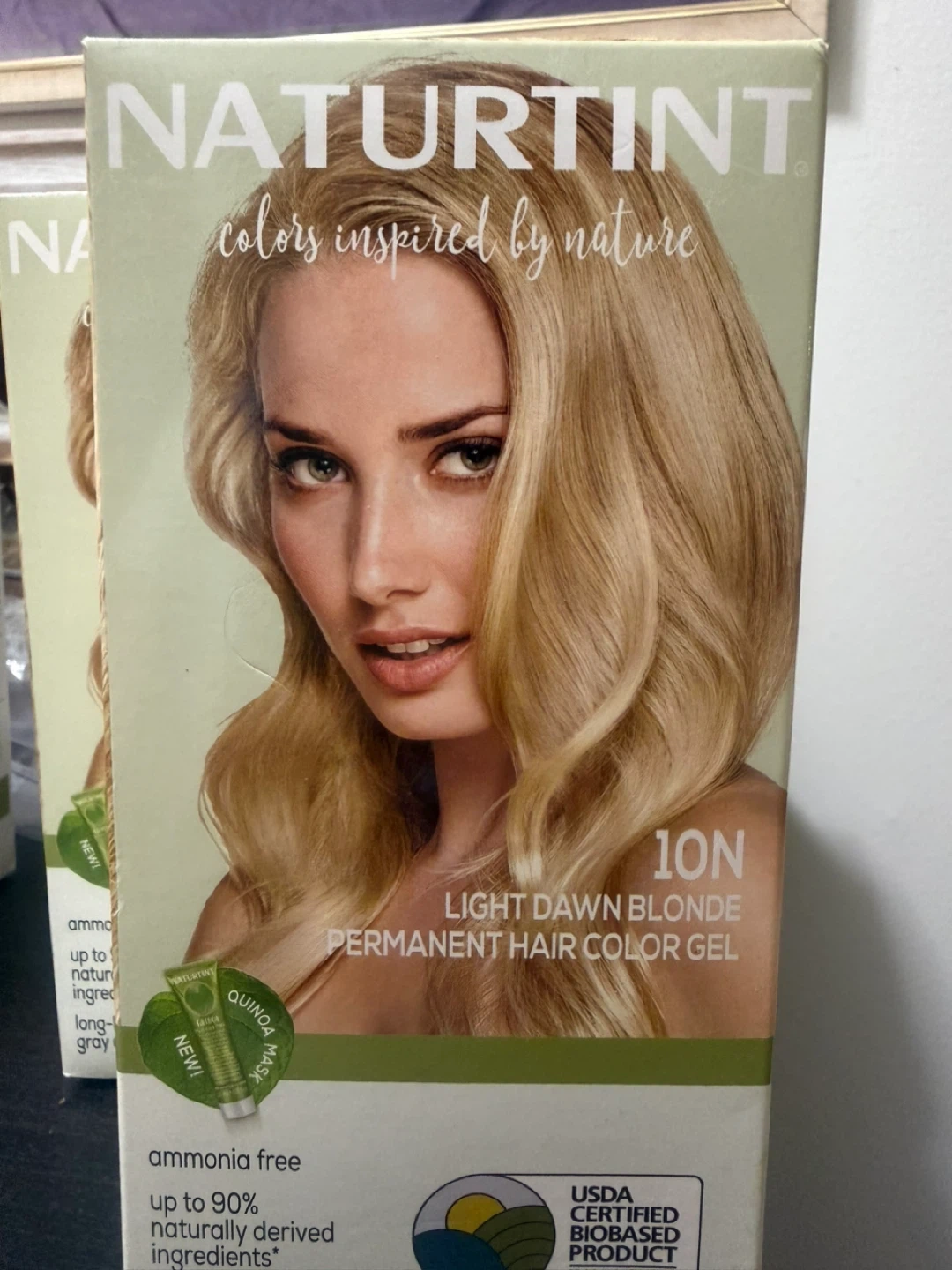 This Naturtint hair color gel is shade 10N, Light Dawn Blonde. It's ammonia-free and made with up to 90% naturally derived ingredients. Includes Quinoa Mask.