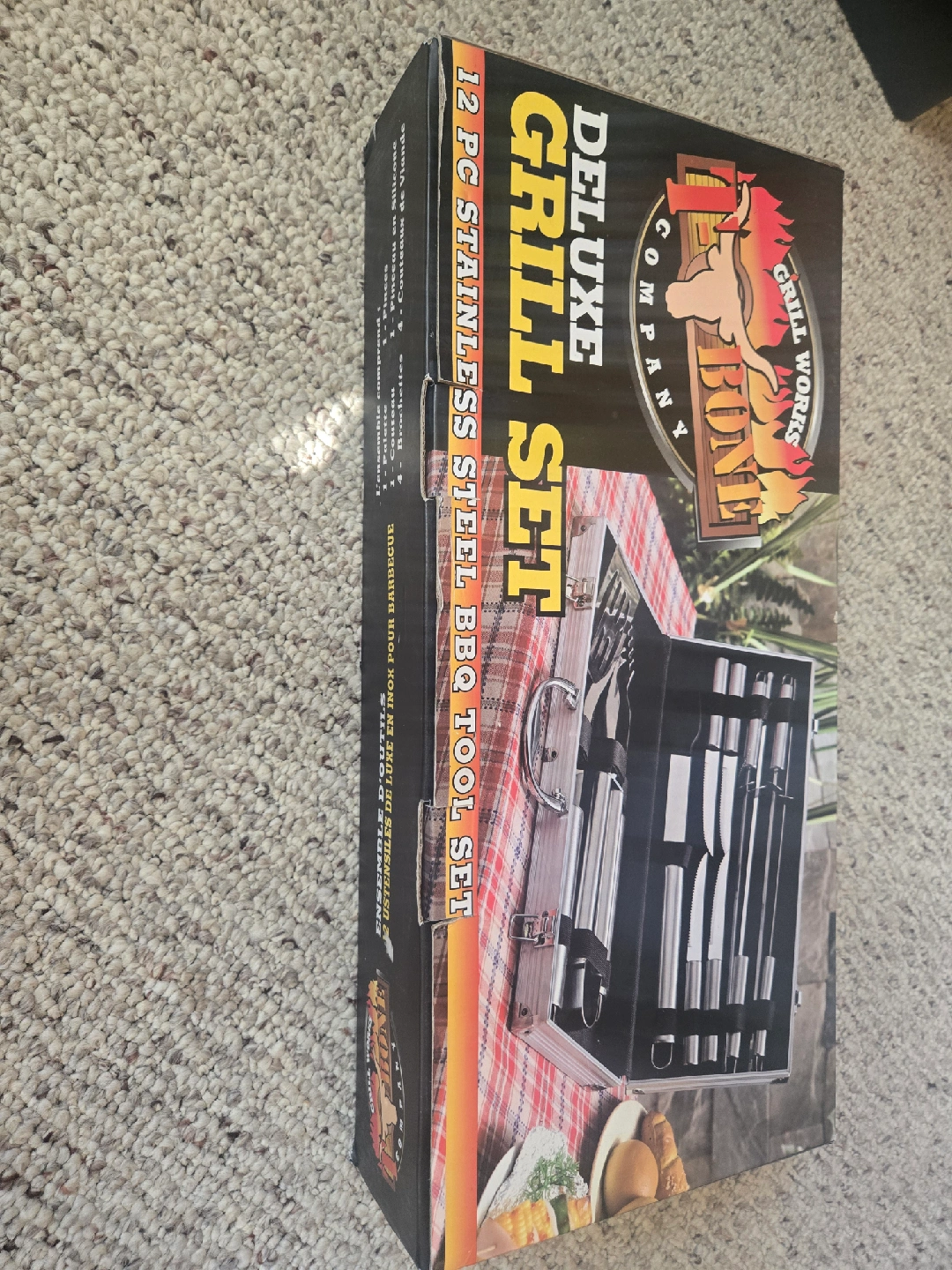 Selling a T-Bone Deluxe Grill Set. It's a 12-piece stainless steel BBQ tool set, perfect for your summer barbecues! The set is brand new in the box.