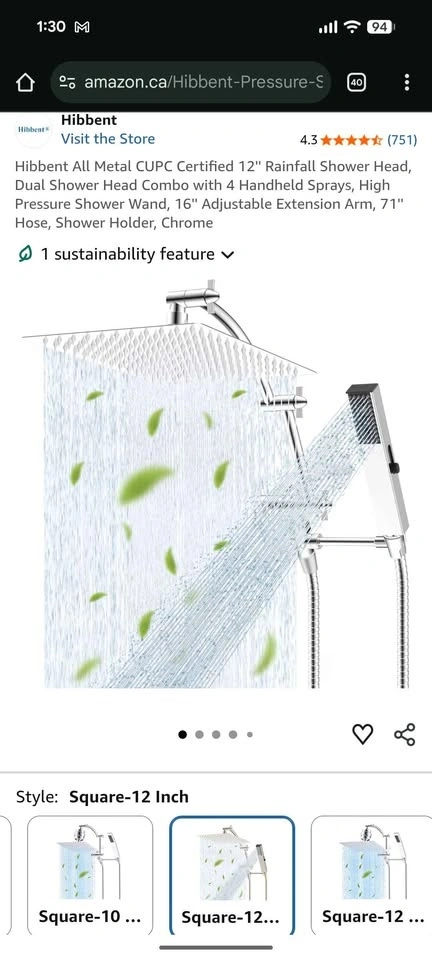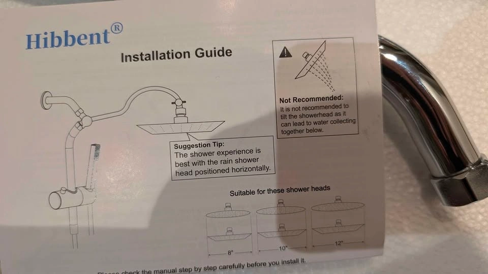 Amazon Price = $ 115 + Taxes Asking only = $70 (New still in Box) About this product: Metal 12x10'' Rain cUPC Certified Shower Head: Made from certified SUS 304 stainless steel, the all-metal shower head combines elegance with durability, ensuring rust resistance and a long-lasting performance. Its slender, modern design, enhanced with air-in technology, features 154 splash jets that deliver a rain spray. The upgraded 12x10'' shower head delivers increased water pressure and is lighter for better support on the extension arm, all while providing the same refreshing, invigorating shower experience. This handheld showerhead combo is cUPC certified, fully complying with U.S. and Canadian plumbing safety standards, making it your trusted choice for reliable safety and performance 4 Spray High Pressure Handheld Showerhead: Hibbent high pressure showerhead, crafted from an all-metal stainless steel material with a user-friendly switch, features an intuitive switch and high-pressure performance with 4 versatile modes to suit all needs: Power Mist delivers a pulsating fine spray for a soothing massage to ease muscle tension; Rain Spray offers a full-body enveloping rinse for a refreshing clean; Power Wash unleashes a concentrated high-pressure stream great for scrubbing floors, walls and hard-to-reach corners; and Water-Saving Mode lets you pause water instantly to lather up without waste Metal Shower Head Bracket & Shower Wand: Compared to a typical shower head bracket, the Hibbent bracket is longer and prevents the handheld spray from hitting the back of the rain shower head. Other shower heads come with shorter brackets, causing the handheld spray to hit the back of the rain shower head. The shower head and bracket are made of stainless steel and brass, ensuring long-lasting corrosion resistance. The shower head holder perfectly adjusts the angle of your shower head 12'' Upgraded Shower Extension Arm: Height & angle adjustable curved design enhances its bearing capacity, raises your shower head to achieve vertical water. Compared with the regular shower arm extender, the Hibbent shower arm extension can raise the shower head higher or lower and keep the shower head in a horizontal position all the way. The shower head is always vertical in your large size and will not hit the shower arm, instead of sloping water like an ordinary straight shower arm Upgraded 3-Way Diverter Valve & Easy Installation: This shower head combo is effortless to install—no tools or plumbers needed. The 3-way diverter allows you to use either the shower head or rainfall showerhead alone, or both simultaneously for a versatile experience. Unlike ordinary diverters that are separate from the extension arm and prone to leaks and shaking, ours is designed for a seamless, secure connection that ensures leak-free and stable performance 41