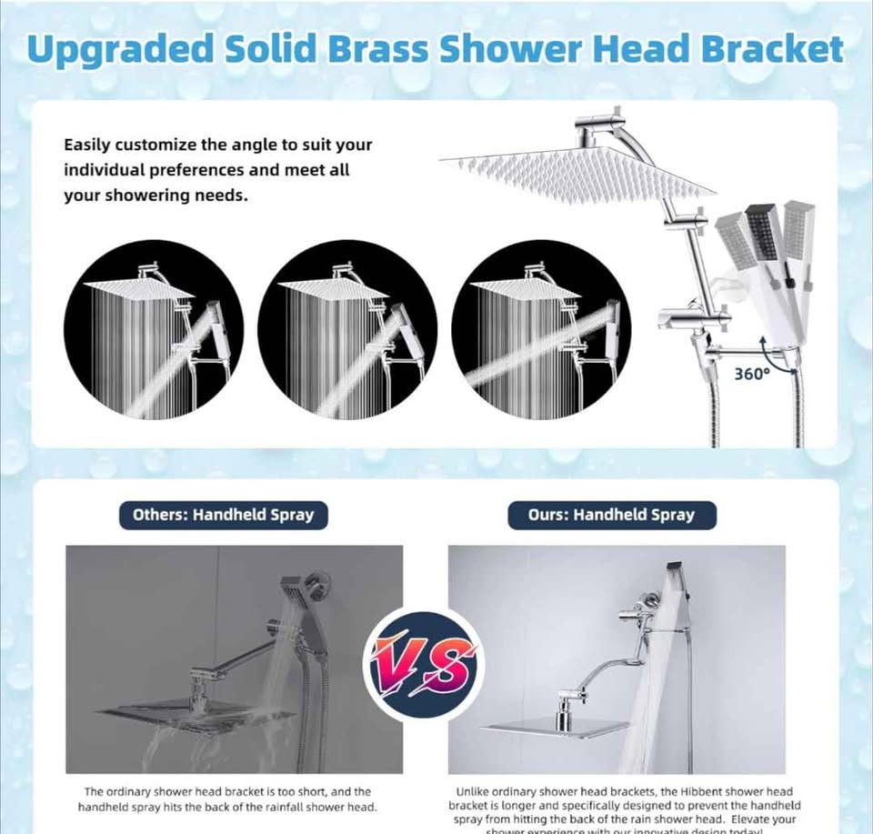 Amazon Price = $ 115 + Taxes Asking only = $70 (New still in Box) About this product: Metal 12x10'' Rain cUPC Certified Shower Head: Made from certified SUS 304 stainless steel, the all-metal shower head combines elegance with durability, ensuring rust resistance and a long-lasting performance. Its slender, modern design, enhanced with air-in technology, features 154 splash jets that deliver a rain spray. The upgraded 12x10'' shower head delivers increased water pressure and is lighter for better support on the extension arm, all while providing the same refreshing, invigorating shower experience. This handheld showerhead combo is cUPC certified, fully complying with U.S. and Canadian plumbing safety standards, making it your trusted choice for reliable safety and performance 4 Spray High Pressure Handheld Showerhead: Hibbent high pressure showerhead, crafted from an all-metal stainless steel material with a user-friendly switch, features an intuitive switch and high-pressure performance with 4 versatile modes to suit all needs: Power Mist delivers a pulsating fine spray for a soothing massage to ease muscle tension; Rain Spray offers a full-body enveloping rinse for a refreshing clean; Power Wash unleashes a concentrated high-pressure stream great for scrubbing floors, walls and hard-to-reach corners; and Water-Saving Mode lets you pause water instantly to lather up without waste Metal Shower Head Bracket & Shower Wand: Compared to a typical shower head bracket, the Hibbent bracket is longer and prevents the handheld spray from hitting the back of the rain shower head. Other shower heads come with shorter brackets, causing the handheld spray to hit the back of the rain shower head. The shower head and bracket are made of stainless steel and brass, ensuring long-lasting corrosion resistance. The shower head holder perfectly adjusts the angle of your shower head 12'' Upgraded Shower Extension Arm: Height & angle adjustable curved design enhances its bearing capacity, raises your shower head to achieve vertical water. Compared with the regular shower arm extender, the Hibbent shower arm extension can raise the shower head higher or lower and keep the shower head in a horizontal position all the way. The shower head is always vertical in your large size and will not hit the shower arm, instead of sloping water like an ordinary straight shower arm Upgraded 3-Way Diverter Valve & Easy Installation: This shower head combo is effortless to install—no tools or plumbers needed. The 3-way diverter allows you to use either the shower head or rainfall showerhead alone, or both simultaneously for a versatile experience. Unlike ordinary diverters that are separate from the extension arm and prone to leaks and shaking, ours is designed for a seamless, secure connection that ensures leak-free and stable performance 41