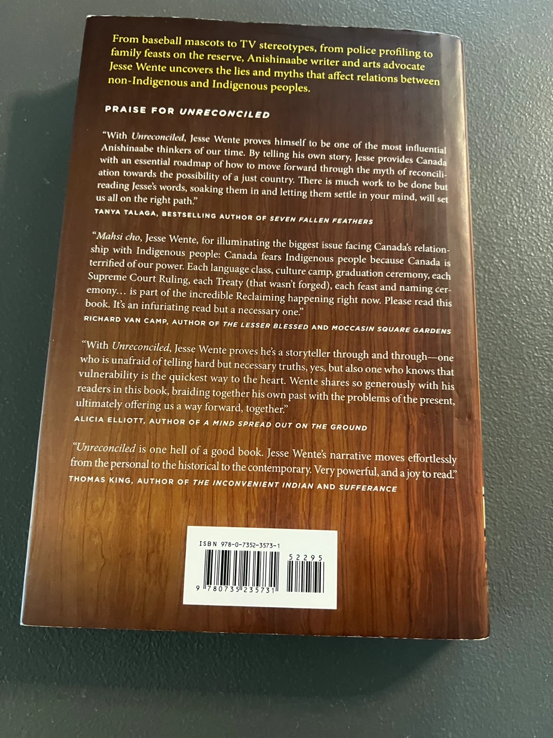 Selling a copy of "Unreconciled: Family, Truth, and Indigenous Resistance" by Jesse Wente! It's a compelling read that explores important themes related to Indigenous experiences in Canada. A thought-provoking book by Anishinaabe writer and arts advocate Jesse Wente, uncovering the ties and myths that affect relations between non-Indigenous and Indigenous peoples