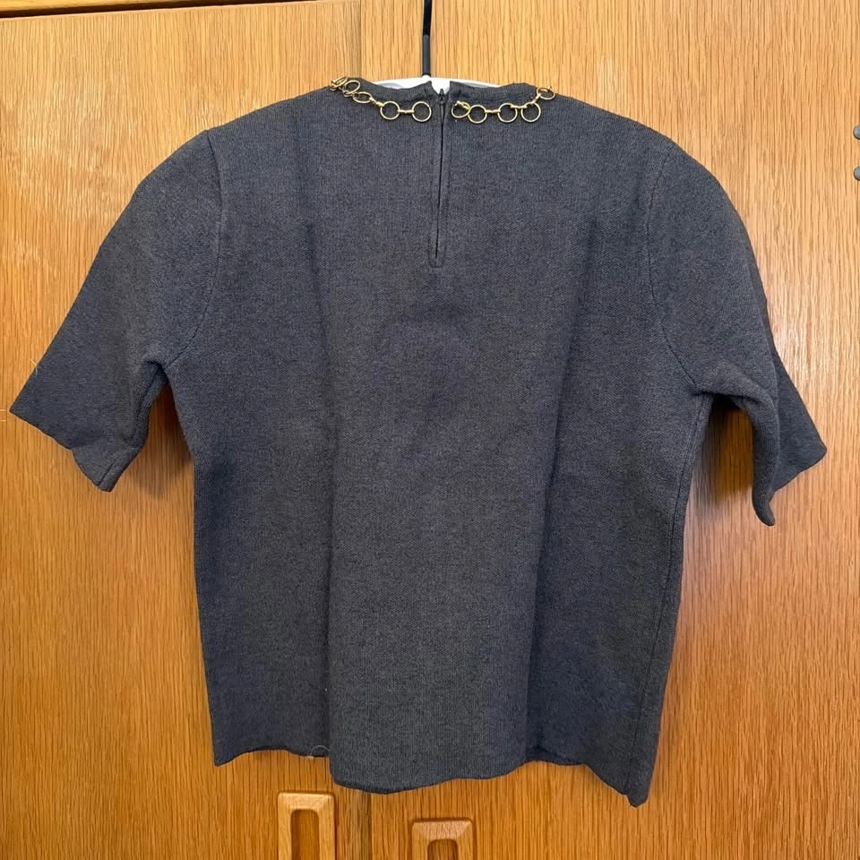 Zara Charcoal Gray Short-Sleeve Top with Gold Chain Detail S