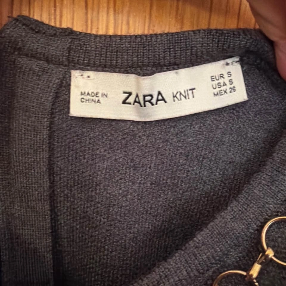 Zara Charcoal Gray Short-Sleeve Top with Gold Chain Detail S