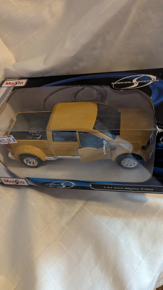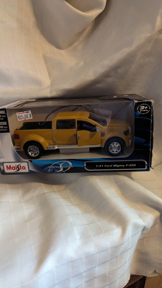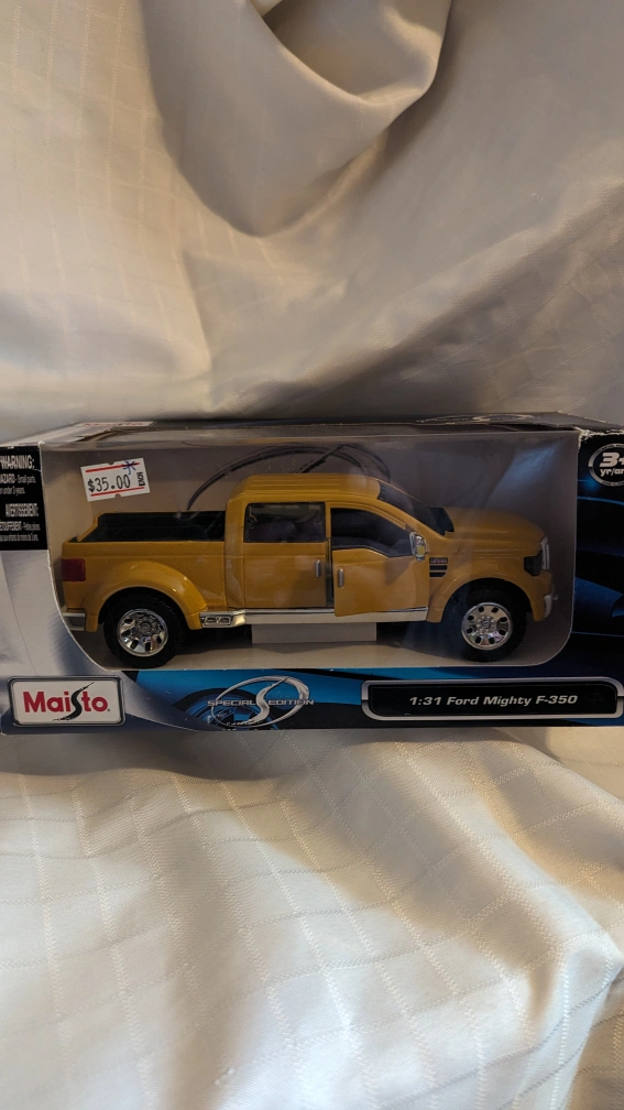 Buy & SellMaisto Ford F-350 Pick-up Truck Die Cast 1/31 Scale NewMaisto Ford F-350 Pick-up Truck Die Cast 1/31 Scale New$30Brand New sealed Maisto Ford F-350 Pickup Truck Die Cast Scale 1/31WHERE TO MEETKildare AreaView MapSELLERKeithKildare301 review1 chats·0 favorites·25 viewsSEND CHAT TO SELLERHi Keith! I’m interested in your listing.Hi Keith! I’m interested in your listing.Get the Karrot app to chatSign In to chat