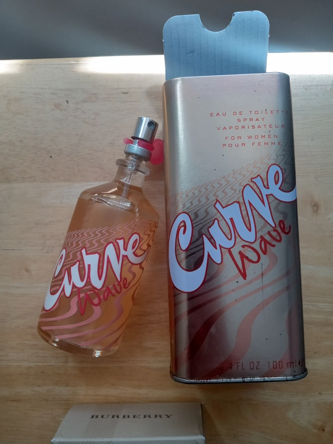 This is Curve Wave by Liz Claiborne Eau de Toilette spray for women. It's a 3.4 fl oz bottle. The fragrance comes in its original tin packaging.