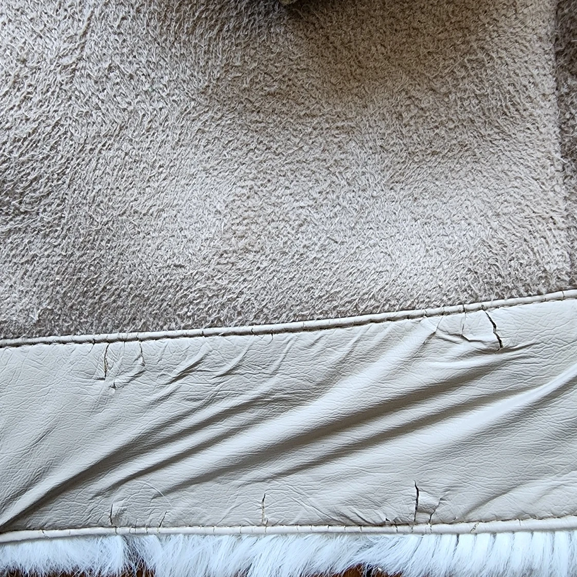 This cute asymmetrical zippered faux fur and suede sweater jacket is brand new. I hand washed it like it said, but the faux leather along the bottom and cuffs cracked. The cracks really aren't that noticeable. It says small but would fit a medium better. I also love the detail in the faux fur, to me it looks like rosebuds. Asking $15.00 OBO.