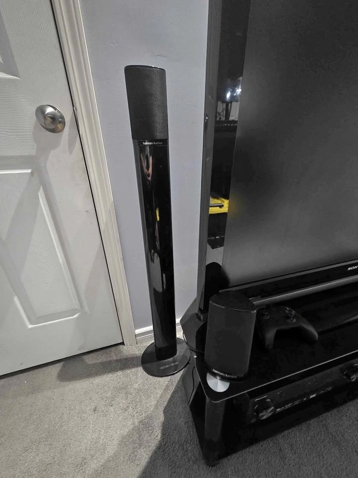 Good set up for Home theater. Includes 4 satellite speakers (2 are tower style), 1 center channel speaker, and a 10-inch 100-Watt powered subwoofer. Pick up in the Homesteader area. Check my other listings!