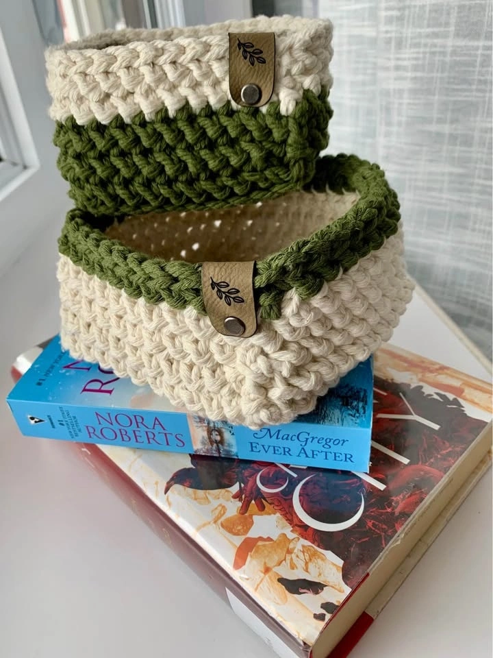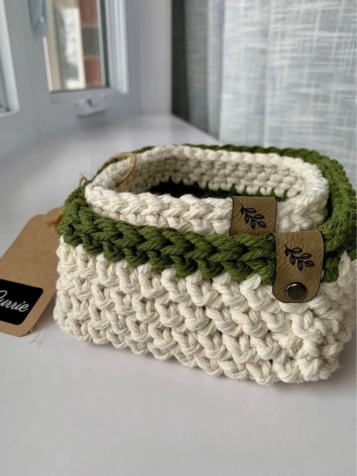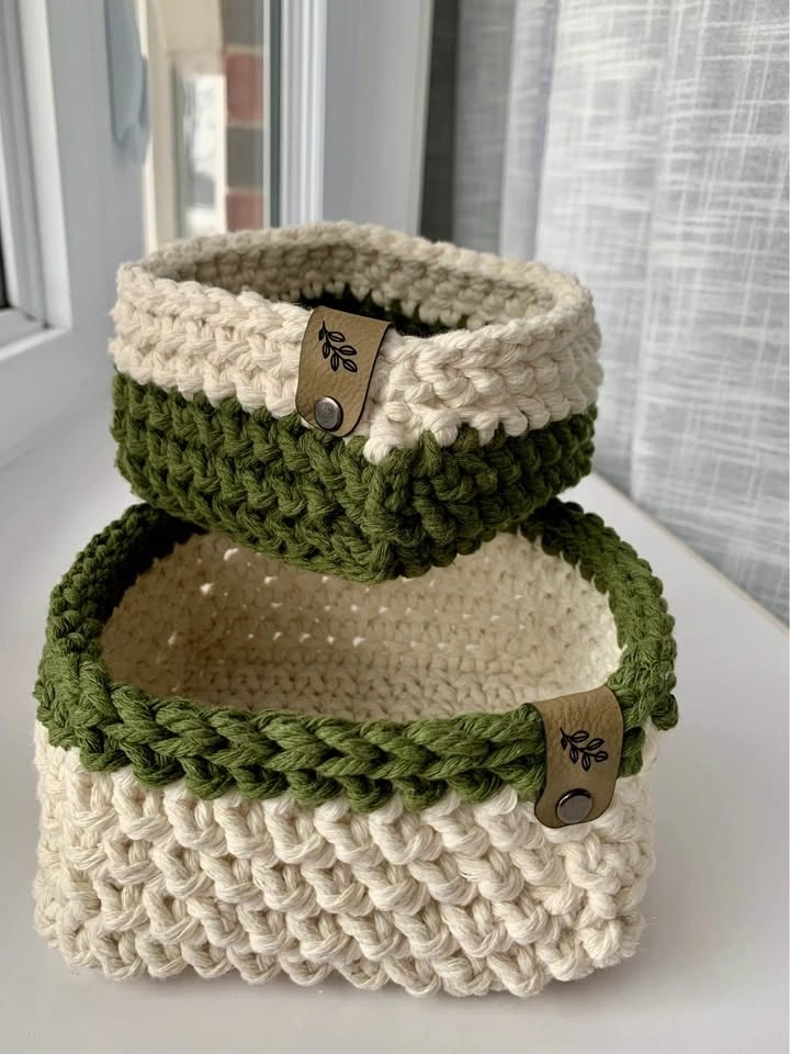 Baskets are made from either cotton cord, wool, or thick acrylic to withstand everyday use in beautiful coordinating colours.