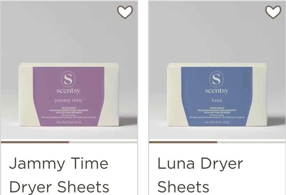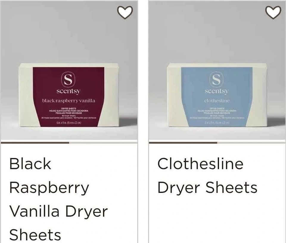 New Scentsy dryer sheets available in Black Raspberry Vanilla, Clothesline, Jammy Time, and Luna. Each box contains 80 dryer sheets and measures 6x9 inches. They're great for making laundry smell amazing!