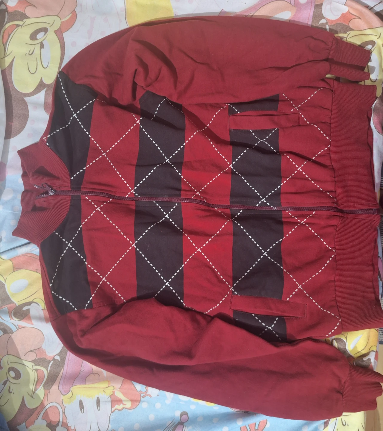 This jacket perfectly blends sportiness with a bold, graphic edge. It features a unique diamond/argyle pattern on the front that gives it a modern, textured look.