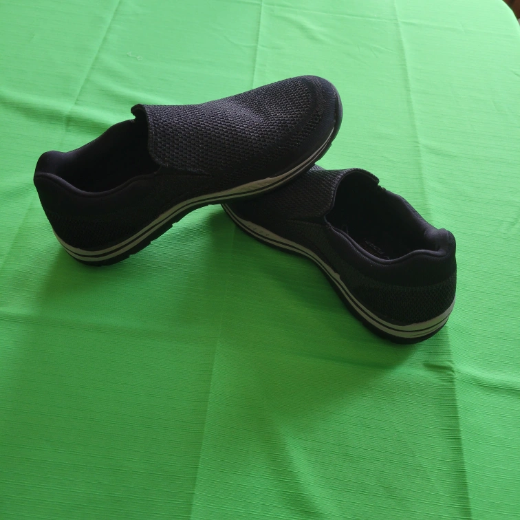 Pair of black slip-on shoes. Breathable mesh upper. Comfortable casual wear. Lightweight design. New ( as in not used)