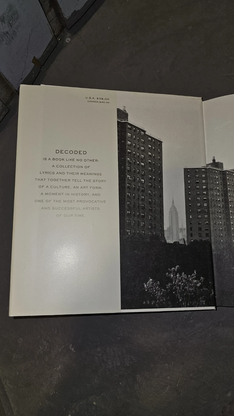 Selling a brand new Jay-Z book, Decoded. It's a collection of lyrics and their meanings, telling the story of a culture and an art form. It includes images and insights from one of the most provocative artists of our time. Hardcover edition.