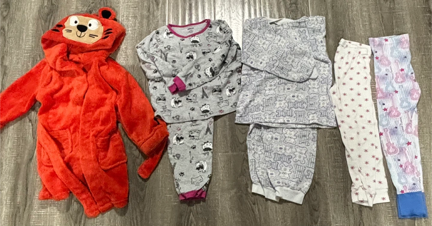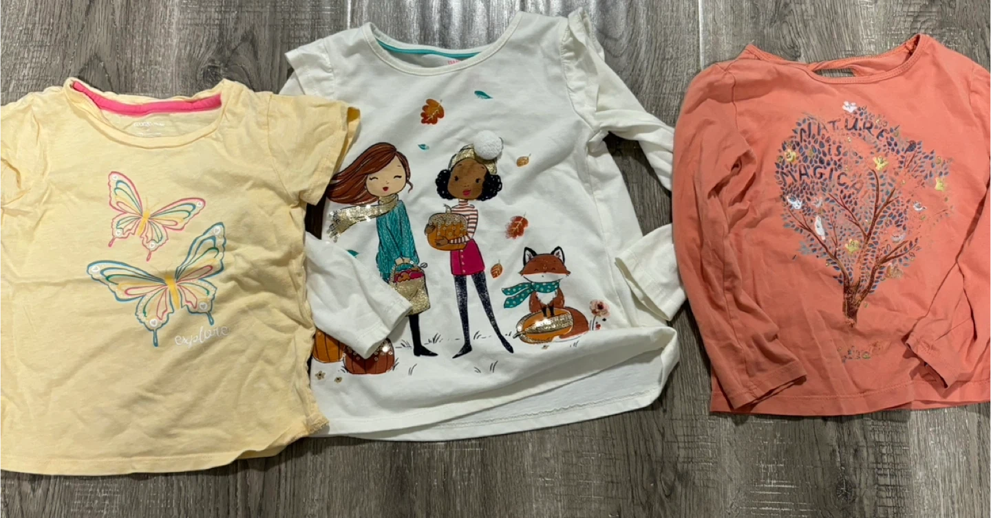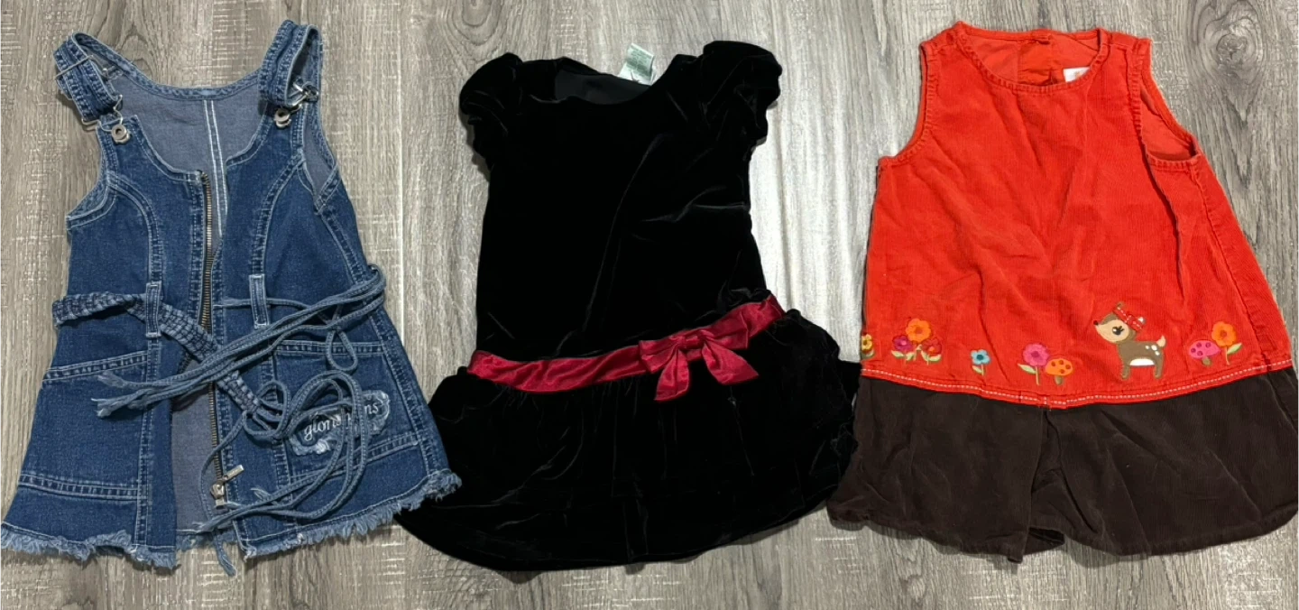 A big bundle of mixed baby and toddler clothing items! There's a variety of items, including dresses, tops, bottoms, outerwear, and accessories, perfect for building a little one's wardrobe