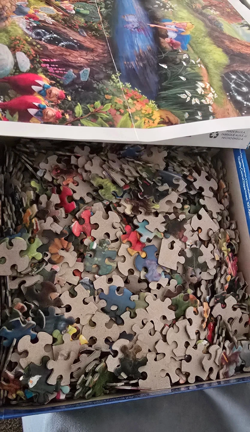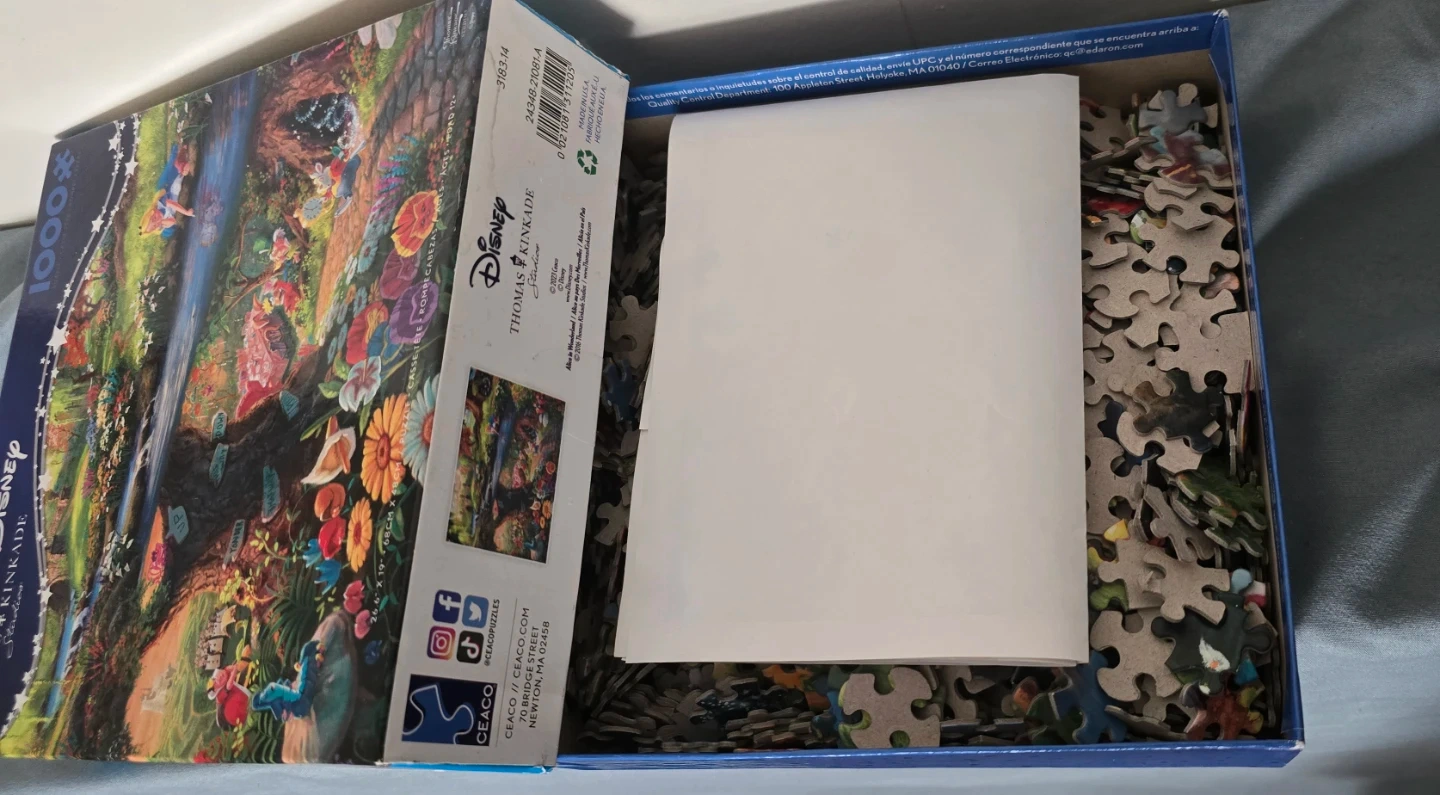 Thomas Kinkade Studios presents this stunning 1000-piece jigsaw puzzle featuring Disney's Alice in Wonderland. The completed puzzle measures 26.5" x 19". It includes all the puzzle pieces and a reference poster. This puzzle is perfect for Disney and Thomas Kinkade fans!