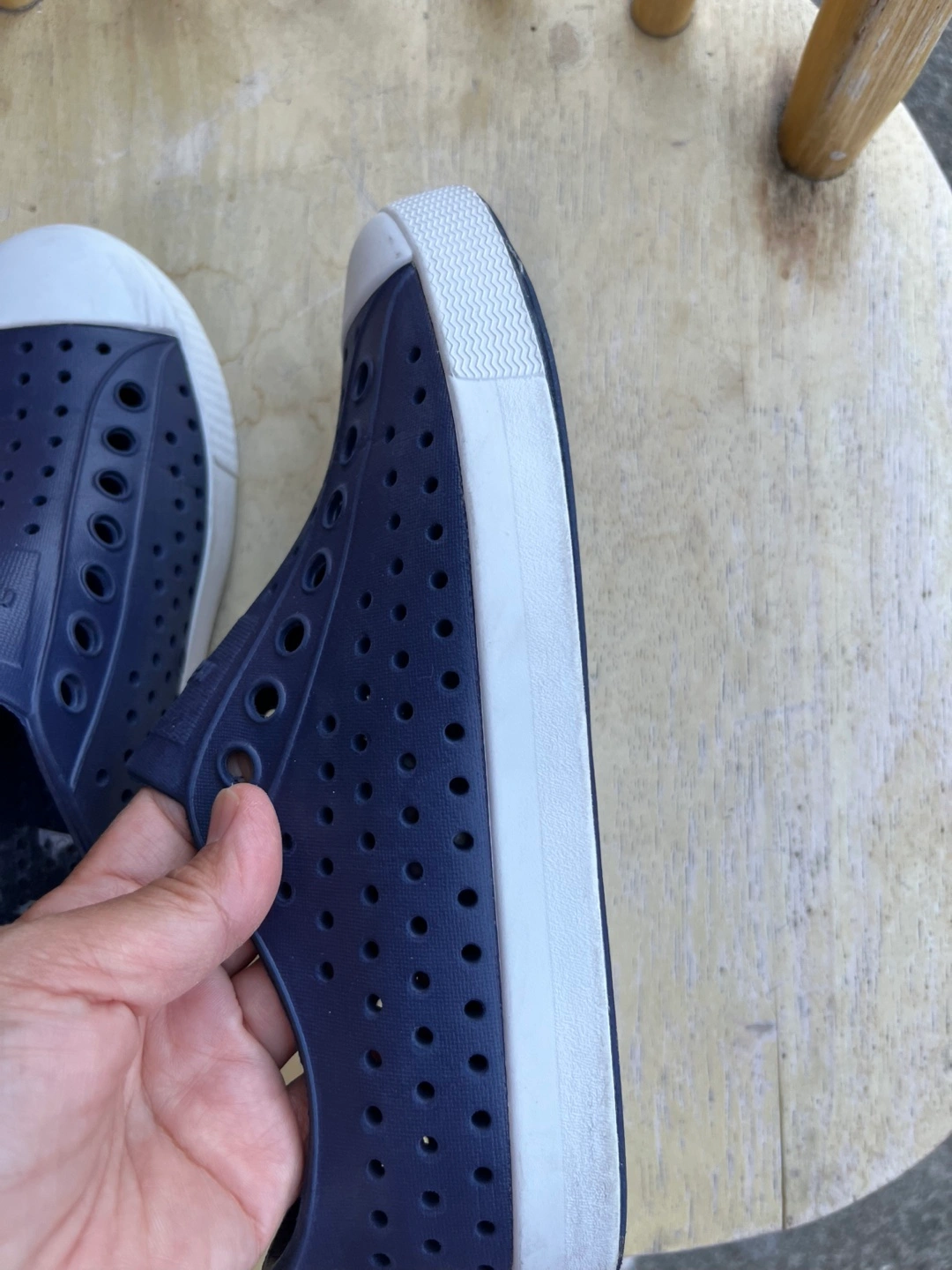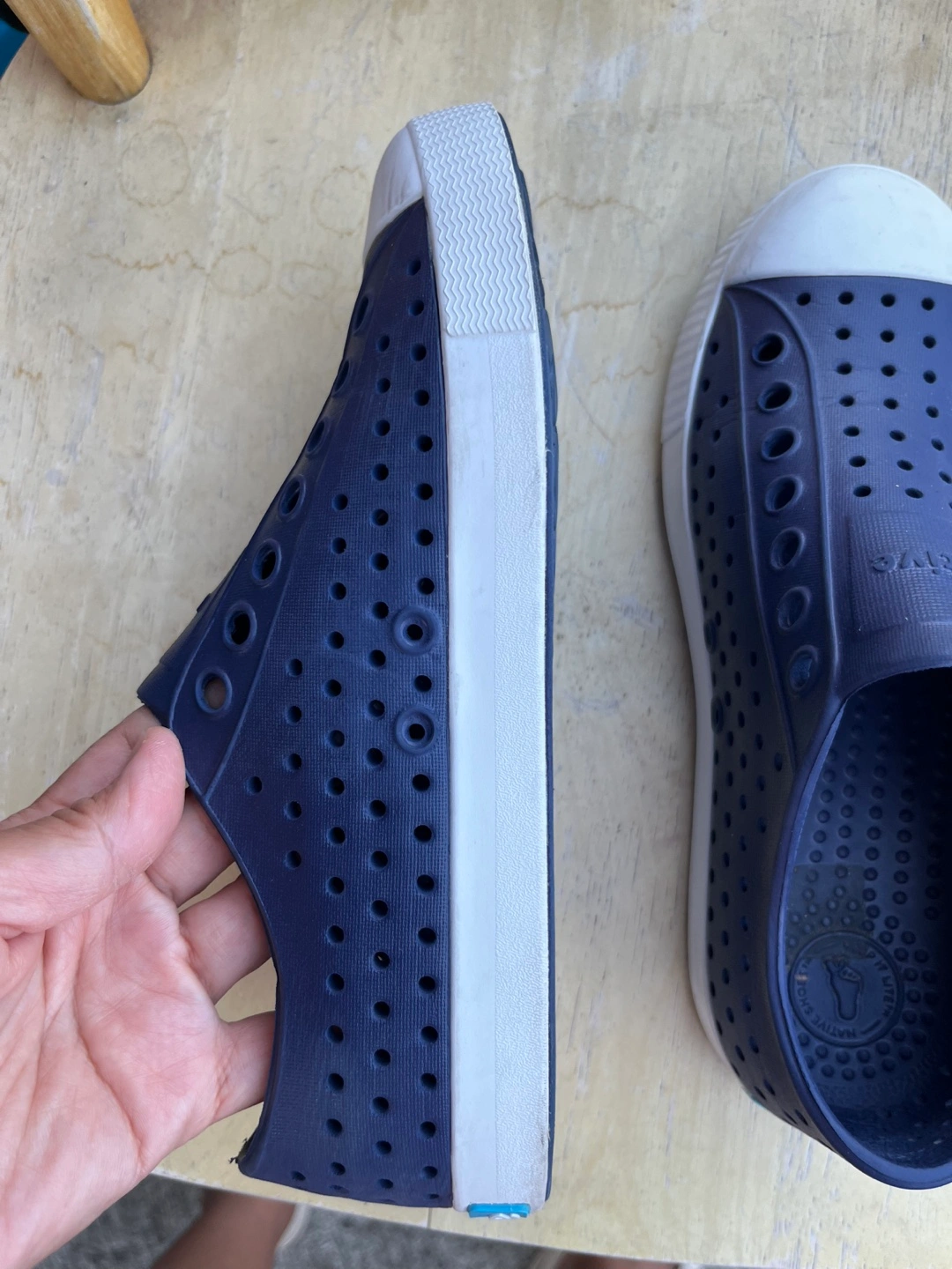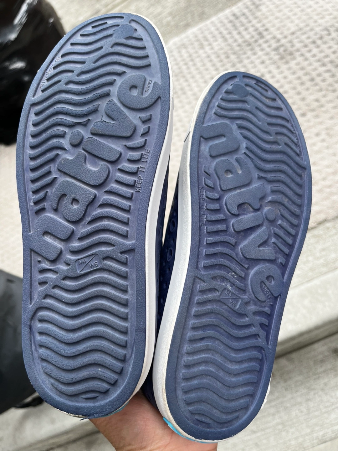 These Native slip-on shoes are in great condition! They're a cool blue colour and are a size M4/W6. Perfect for kids who love to play outside and need something easy to slip on and off.