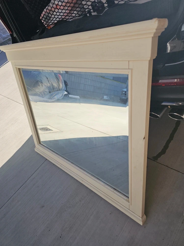 Large White Beveled Edge Mirror