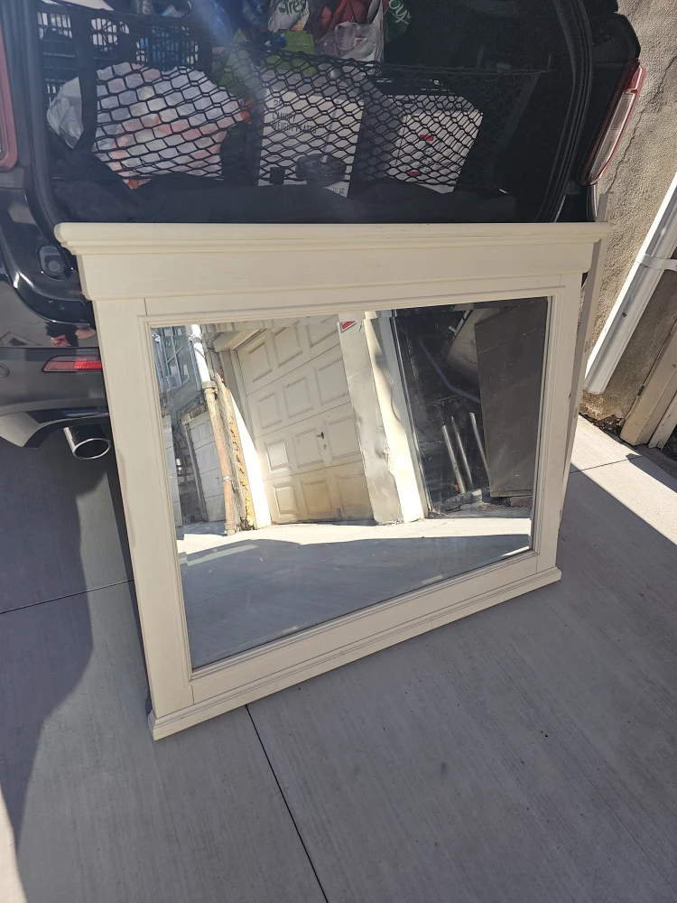 Large White Beveled Edge Mirror