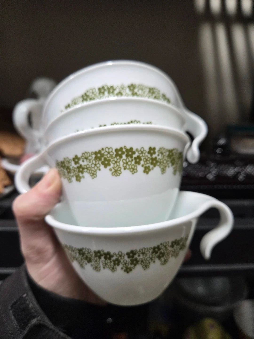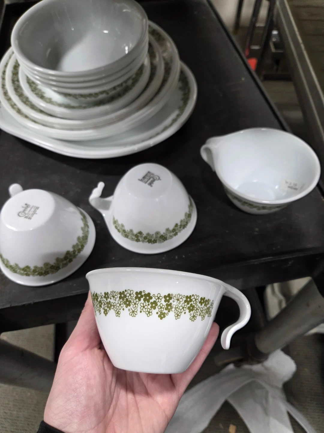 Matches coordinates the vintage pyrex spring blossom sets. I have butterfly gold and some old town blue onion too. Come by appointment to my storage spot. During 8am to 430pm by appointment.