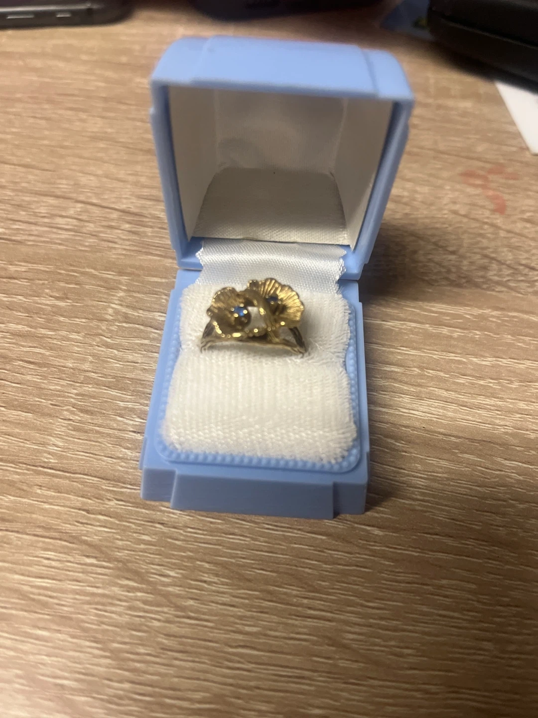 Buy & SellGold Flower Ring with Blue StoneGold Flower Ring with Blue Stone$239Gold ring with a floral design and a blue stone. It's in a blue ring box. This unique ring would make a thoughtful gift!WHERE TO MEETGibbonsView MapSELLERHoldenGibbons140 reviews1 chats·0 favorites·17 viewsSEND CHAT TO SELLERHi Holden! I’m interested in your listing.Hi Holden! I’m interested in your listing.Get the Karrot app to chatSign In to chat