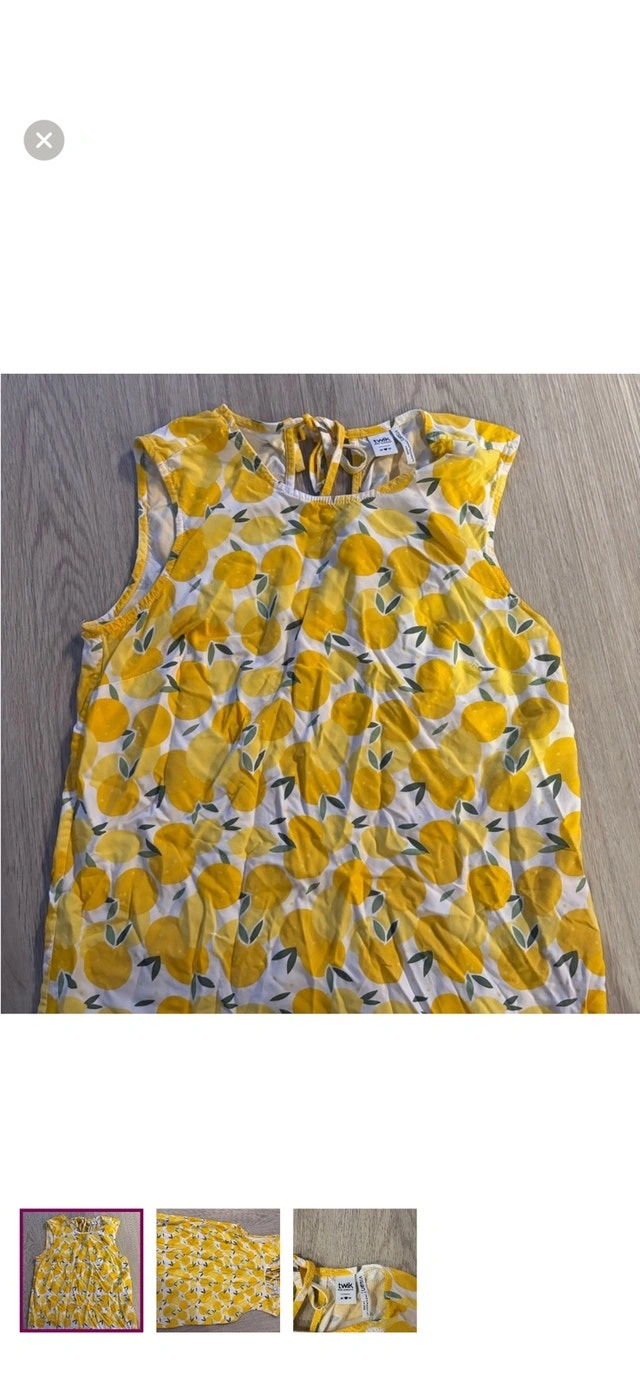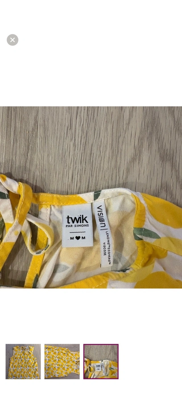 This adorable used Twik lemon print top is a size M. It's perfect for summer! Colour: Yellow and white. Print: Lemon. This top is so cute, you'll want to wear it every day! If you see this ad, it's still available!