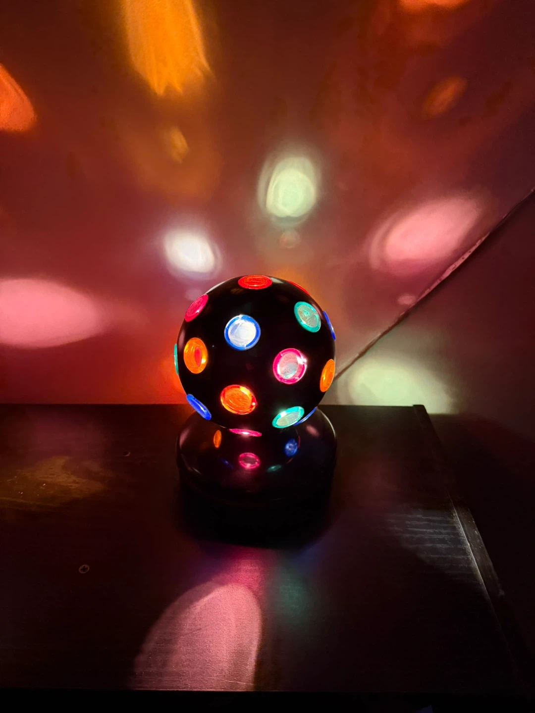 This disco ball light projects colourful patterns onto walls and ceilings. It's a fun addition to any party or gathering, creating a vibrant atmosphere! Easy to set up and use.