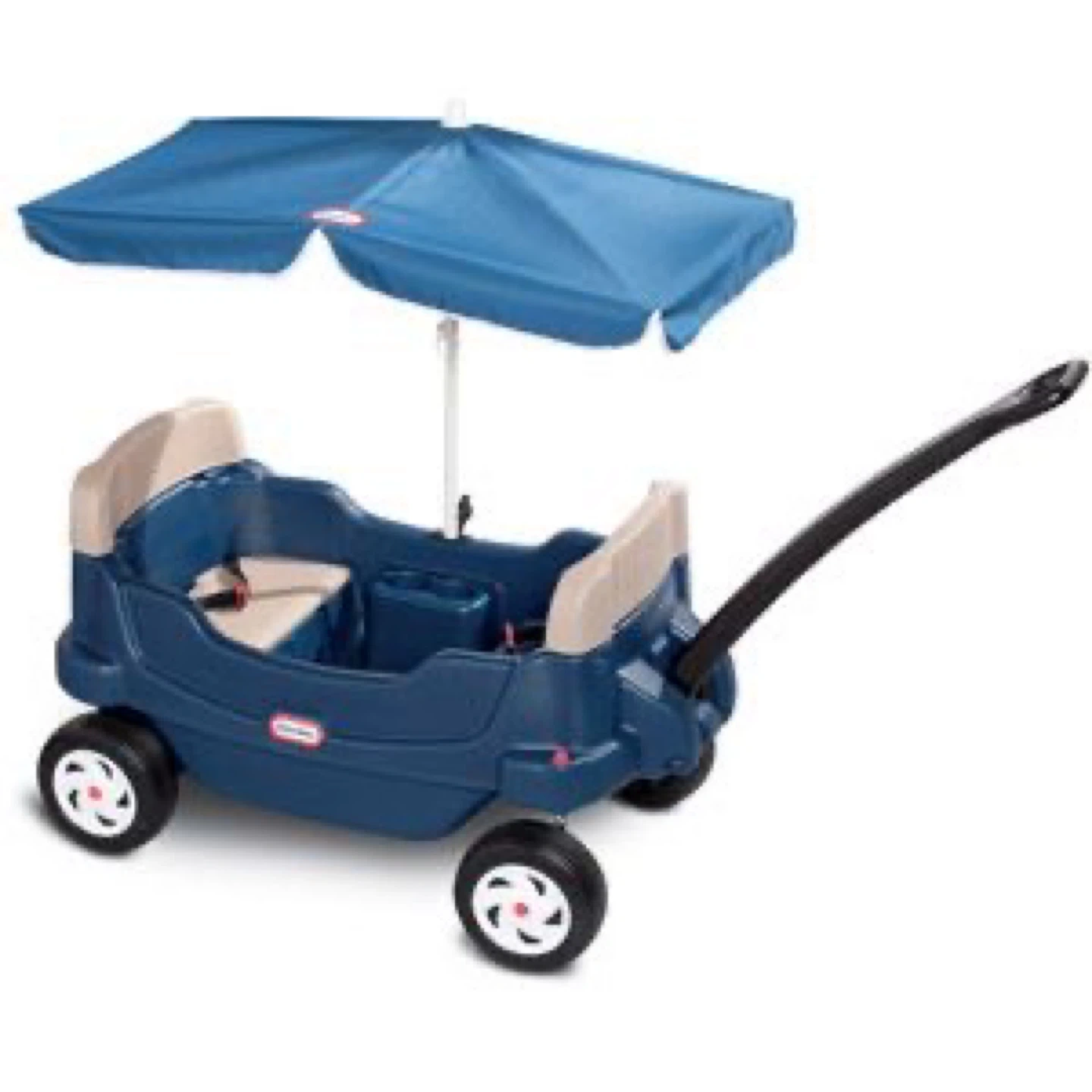 The Little Tikes Deluxe Cruisin' Wagon offers plenty of fun for two children on sunny days with its roomy seating, convenient storage bin, cup holders and folding handle for transport. The umbrella keeps little ones protected from the sun whilst they cruise along pulling the wagon themselves or have an adult push them. Drinks and snacks can be stowed in the wet/dry compartment, making this a perfect wagon for hitting the pavement or going on outdoor adventures around the neighbourhood.