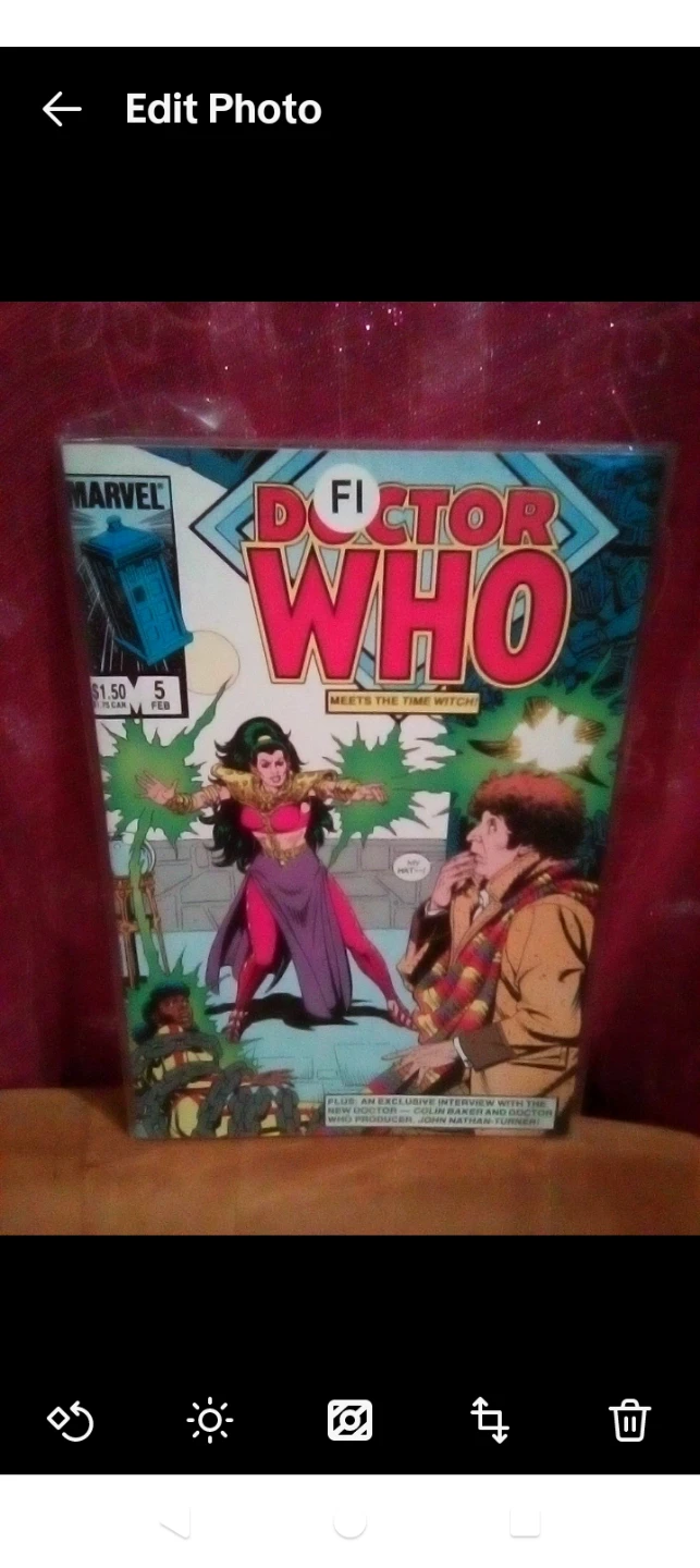 This is Doctor Who comic book issue #5. It features "Meets The Time Witch!". Includes an exclusive interview with the legendary Tom Baker and David Tennant. Comic is in protective plastic.