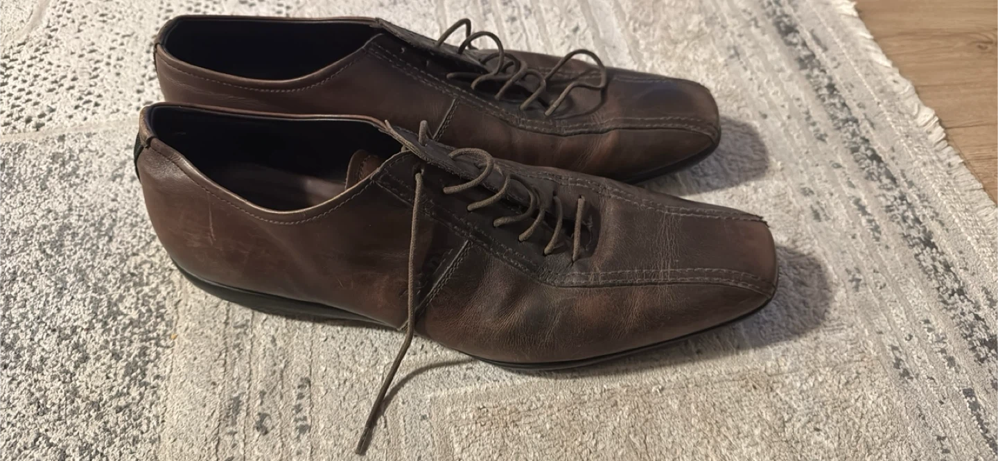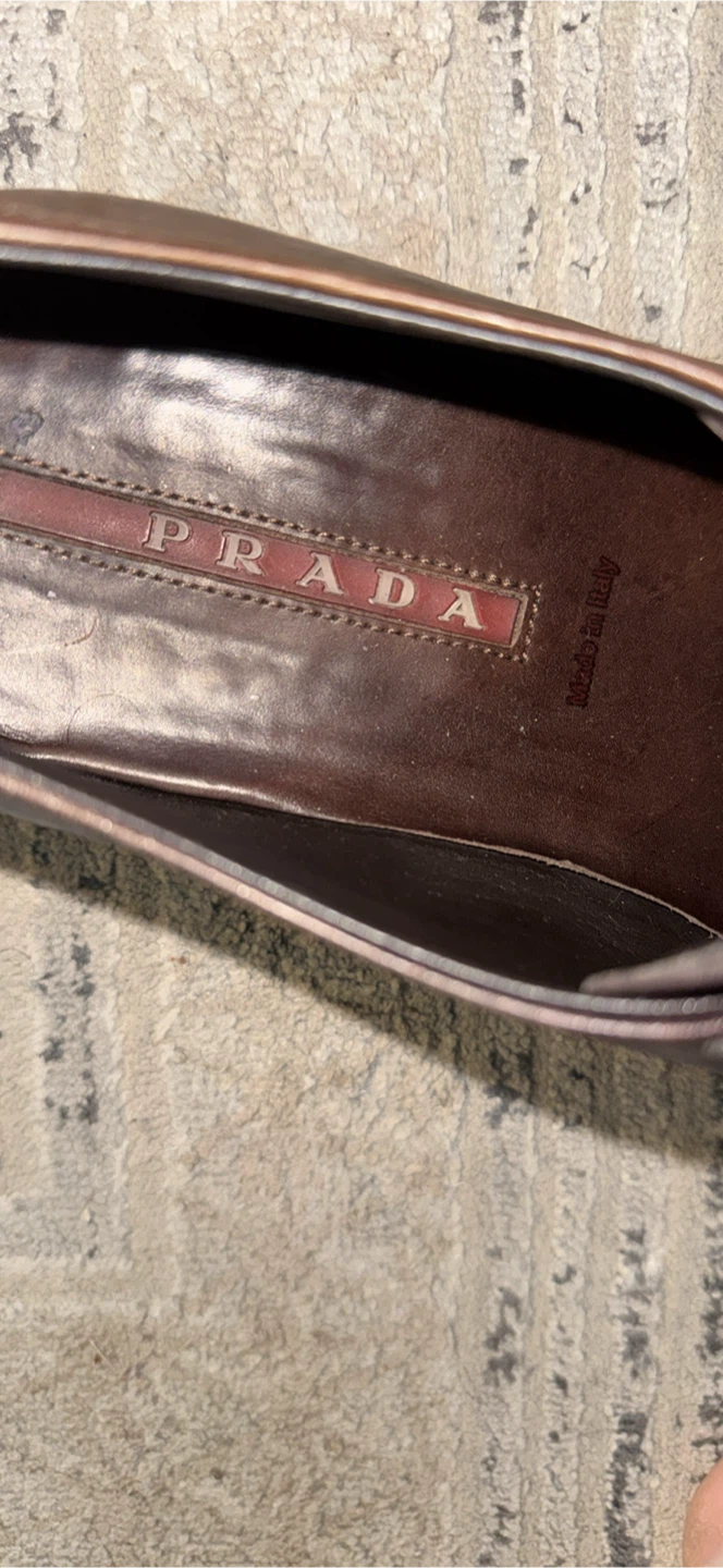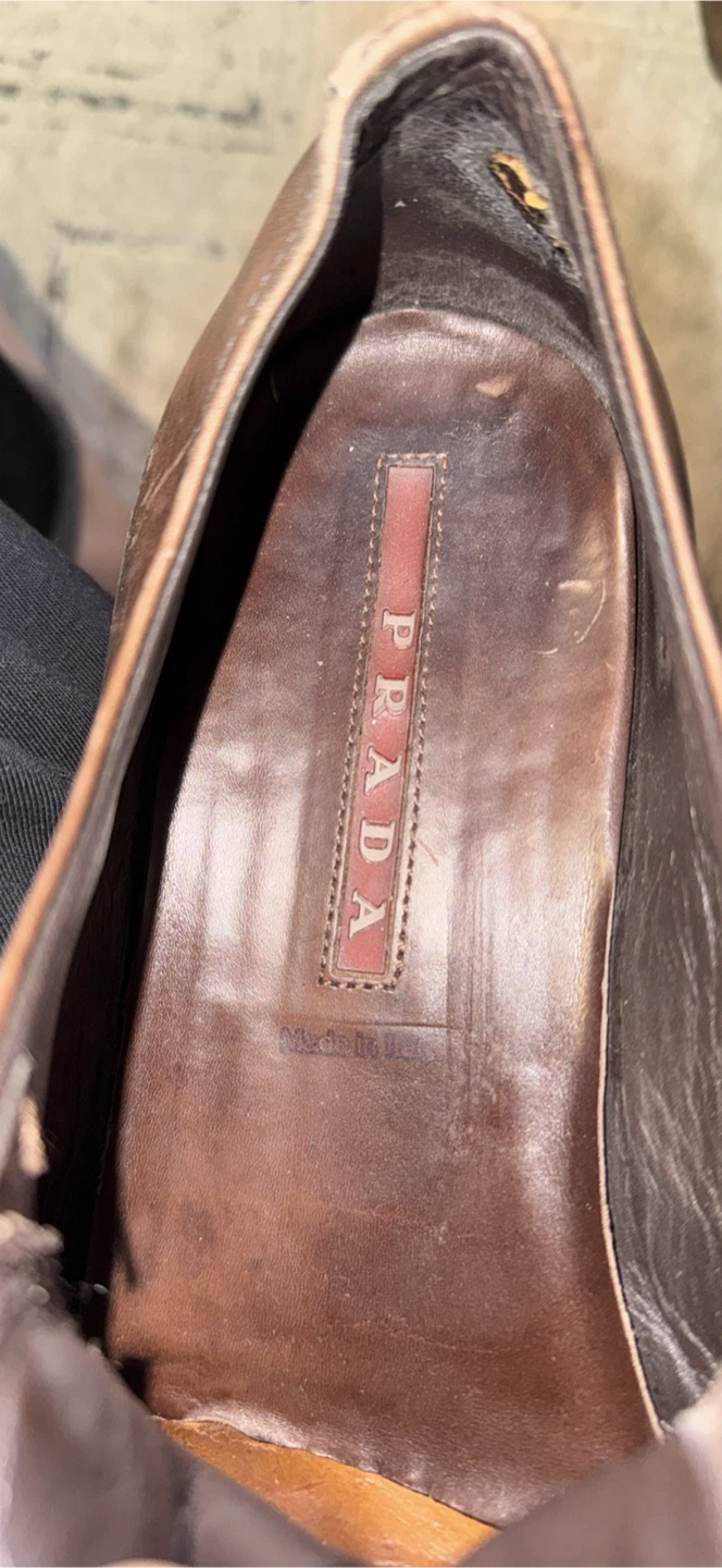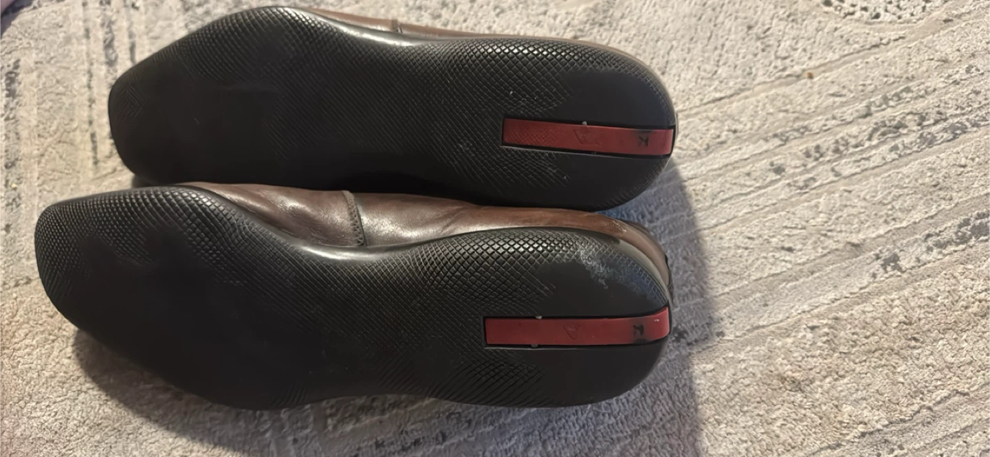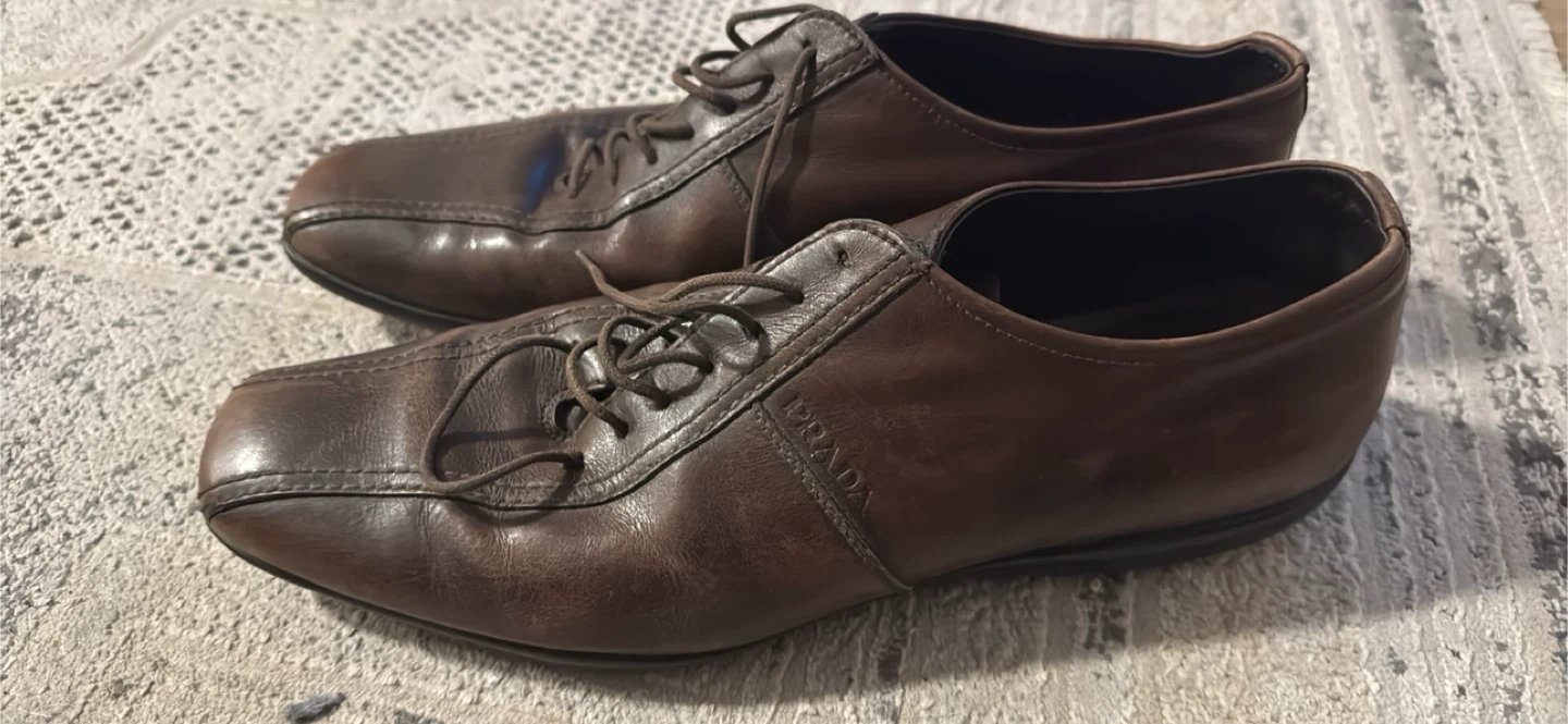Buy & SellPrada Brown Leather shoesPrada Brown Leather shoes$120The laces needs to be fixed on one, could be done by buyer for personal preference, size 10ConditionGoodSizeSize 10 BrandPradaWHERE TO MEETCheck LocationView MapSELLERverifiedMozaGlen Abbey650 reviews0 chats·0 favorites·9 viewsSEND CHAT TO SELLERHi Moza! I’m interested in your listing.Hi Moza! I’m interested in your listing.Get the Karrot app to chatSign In to chat