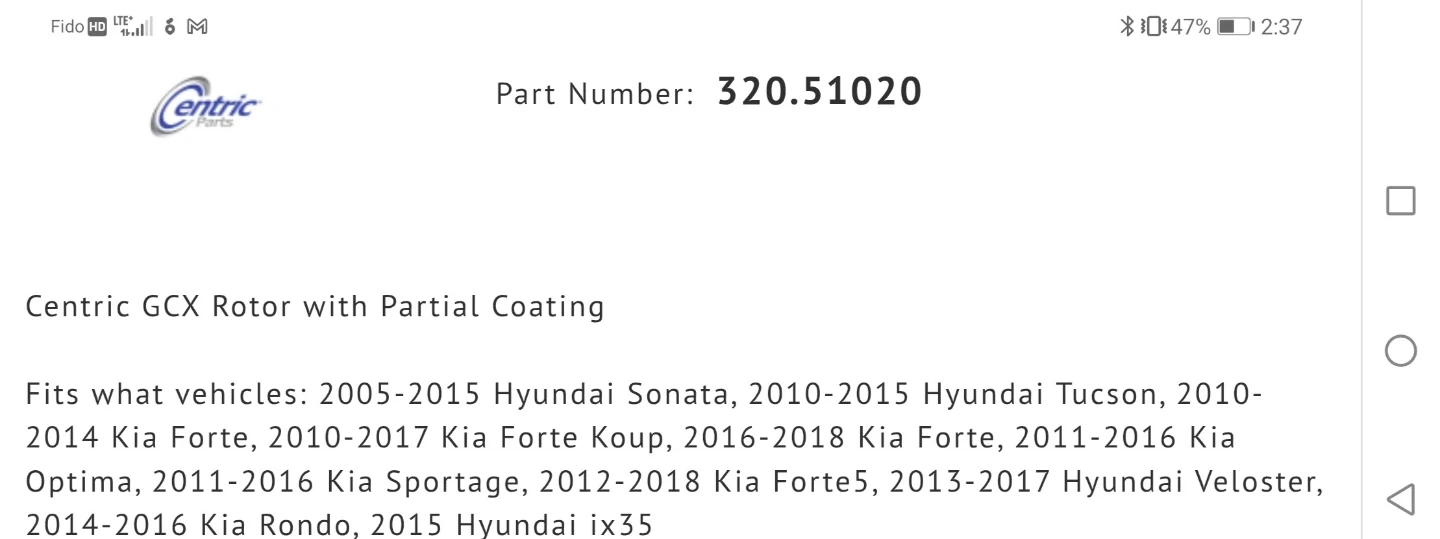 Centric GCX Rotors with partial coating. Designed for front axle placement. Fits various Hyundai and Kia models list is in the images prices is for both