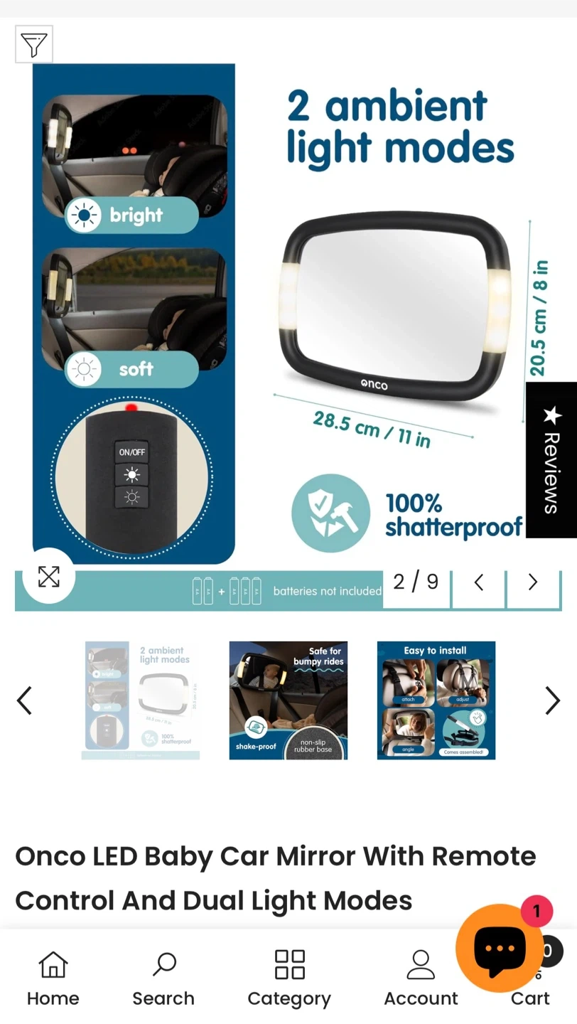 Keep an eye on your little one with this Onco LED baby car mirror! It comes with a remote control and features dual light modes. The mirror is shatterproof and easy to install, making car rides safer and more enjoyable for everyone