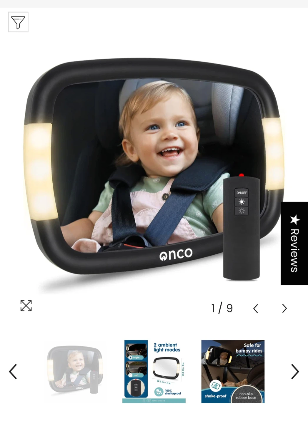 Keep an eye on your little one with this Onco LED baby car mirror! It comes with a remote control and features dual light modes. The mirror is shatterproof and easy to install, making car rides safer and more enjoyable for everyone