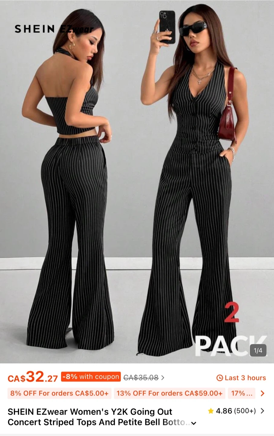 SHEIN Striped Halter Vest and Bell Bottom Pants Set