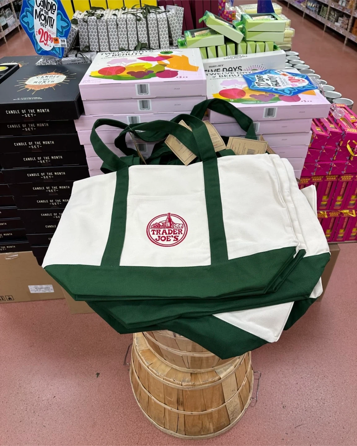 Buy & SellTrader Joe's Tote Bag - Green / NavyTrader Joe's Tote Bag - Green / Navy$15$15 each price is firmConditionNewBrandTrader Joe'sWHERE TO MEETCheck LocationView MapSELLERverifiedjasmineNewmarket Stonehaven762 reviews4 chats·4 favorites·72 viewsSEND CHAT TO SELLERHi jasmine! I’m interested in your listing.Hi jasmine! I’m interested in your listing.Get the Karrot app to chatSign In to chat