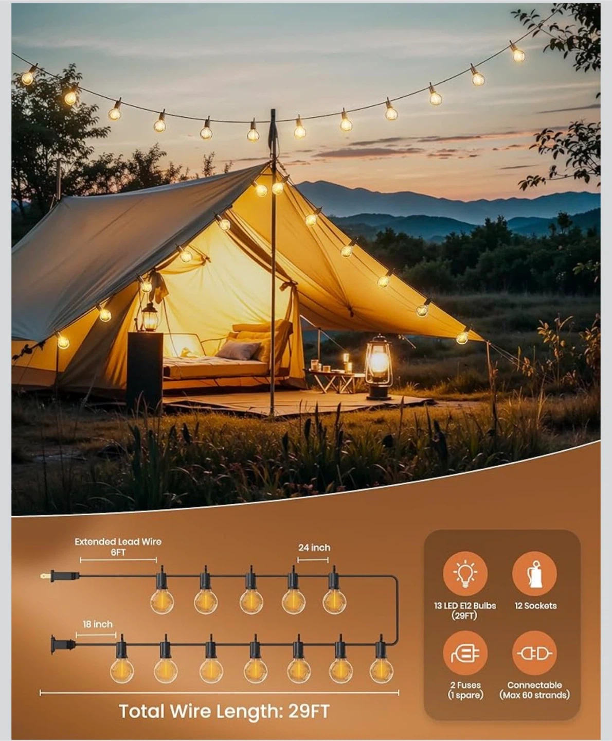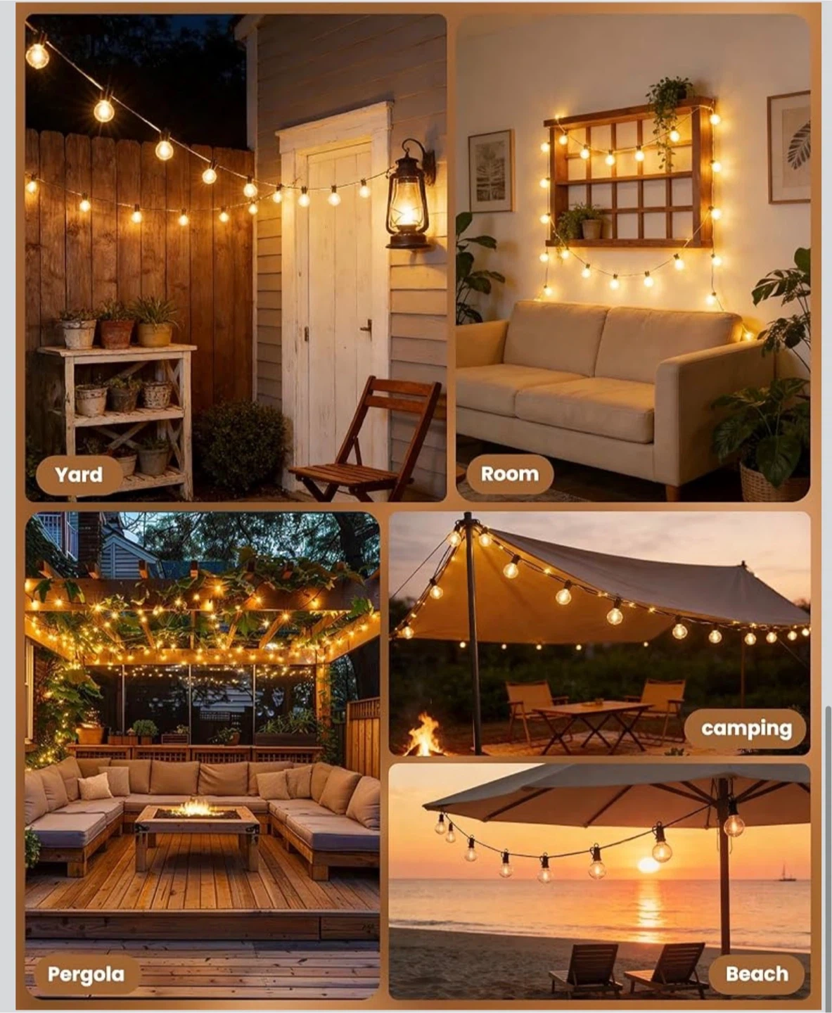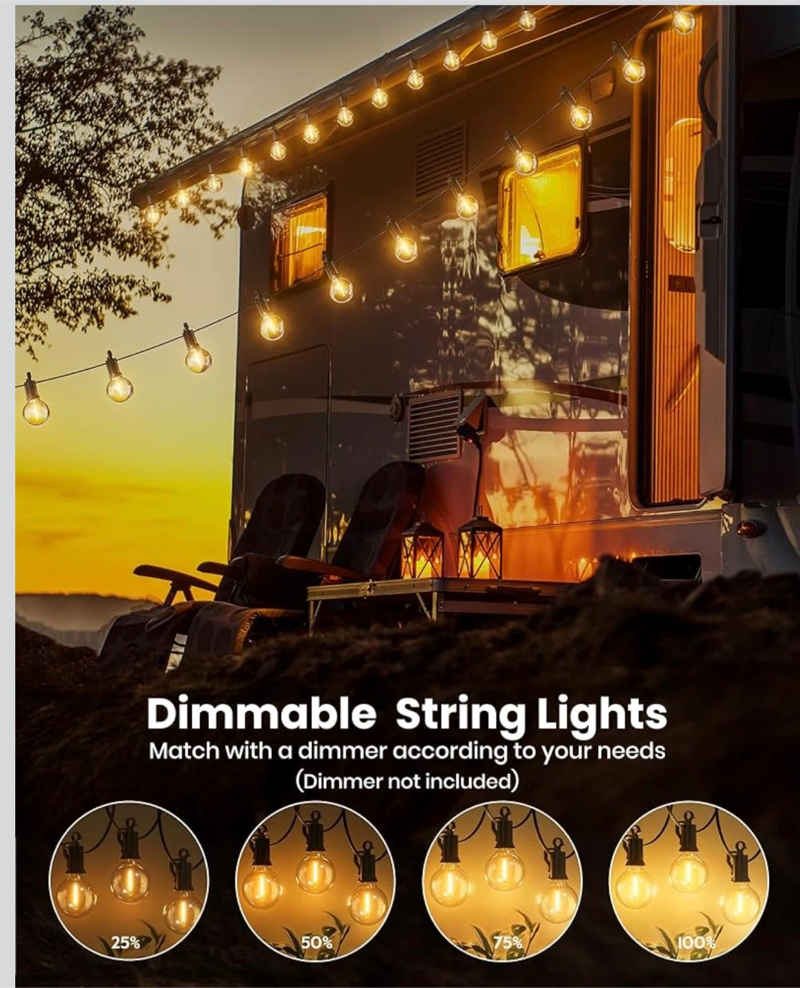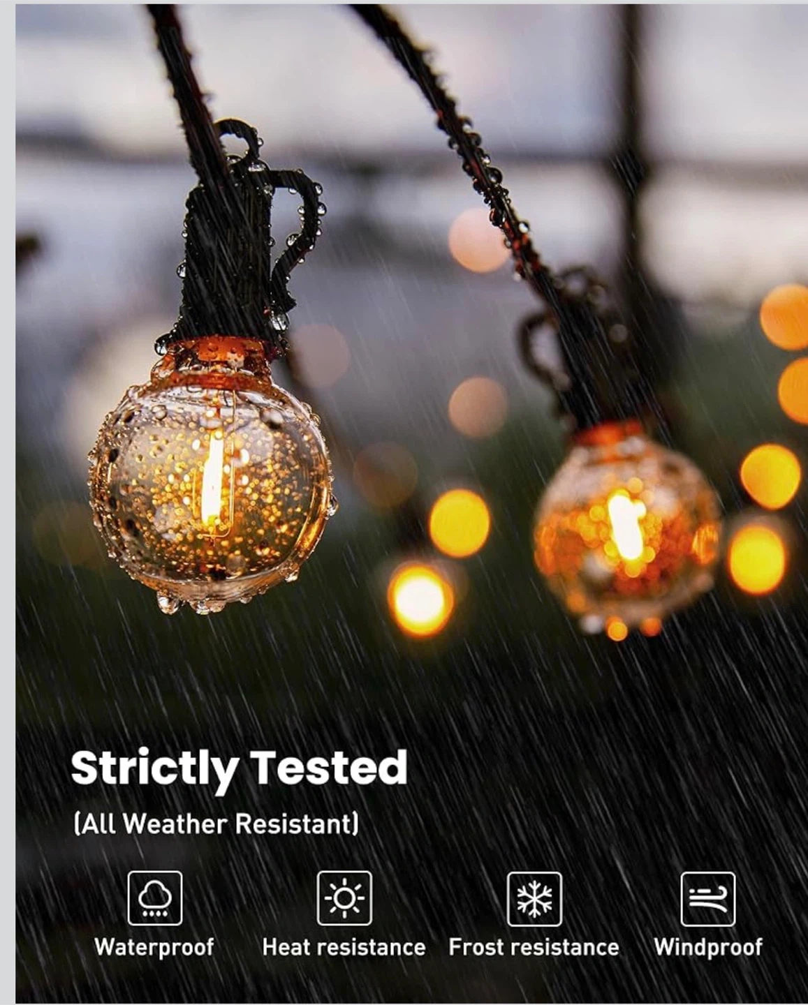 These UL certified string lights boast shatterproof bulbs and commercial-grade wire for durability. They're dimmable and feature a warm 2200K color temperature. Built for all-weather resistance, including waterproof, heat, frost, and windproof capabilities!